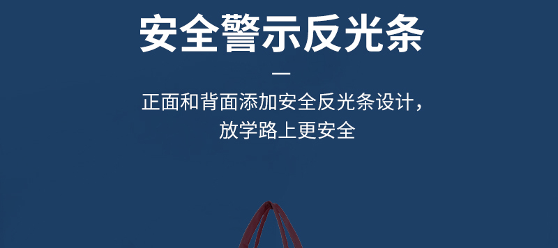 学生单肩手提补习袋正面和背面添加安全反光条设计,放学路上更安全。包身采用轻面料+配件,大容量储物空间,可以放入书本、笔盒、雨伞等。包包定制请找广东豪门国际科技,豪门国际科技是一家以设计研发、生产销售、品牌打造为一体的智能箱包生产厂家,产品时尚,外光精致,交货准时。定制热线:18575391373