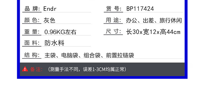 - 款式:双肩
