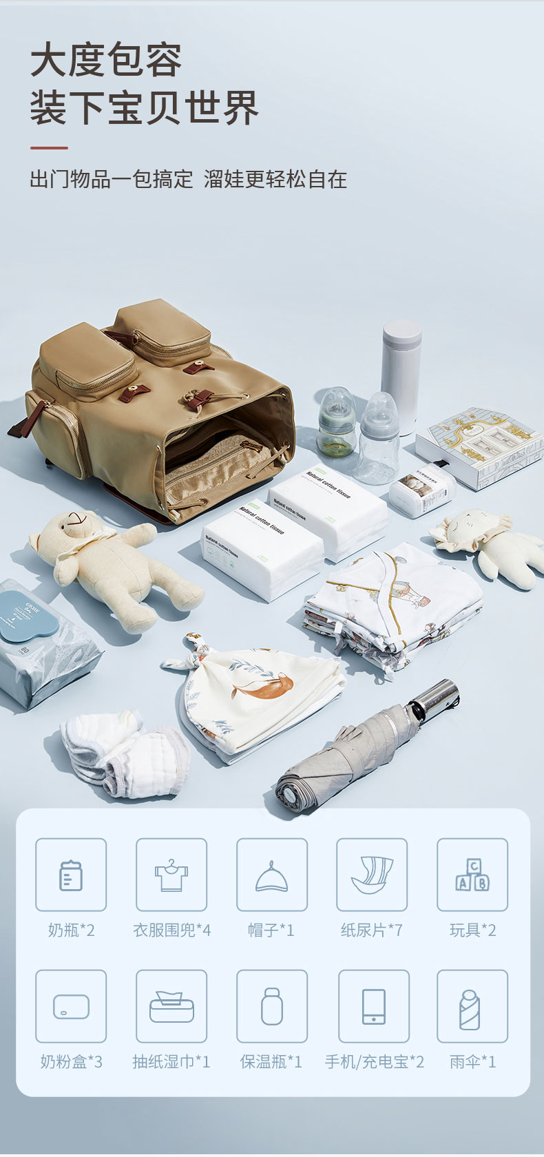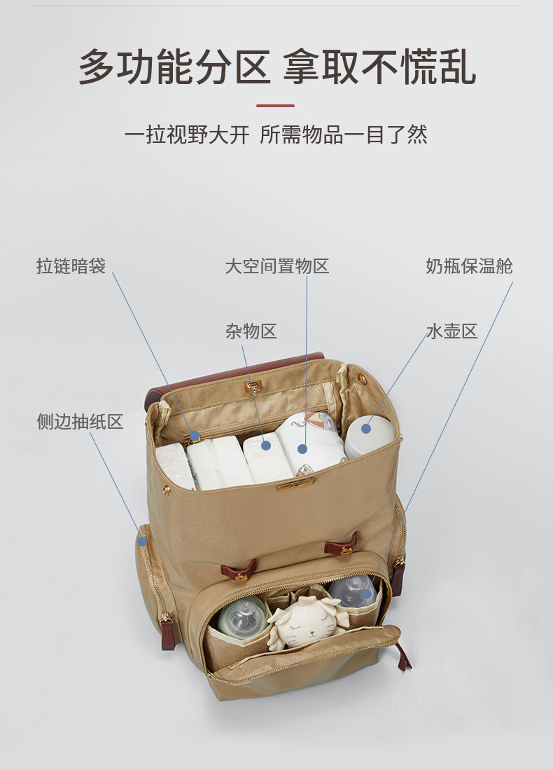 妈咪包多功能分区,拿取方便,ODM OEM定制;