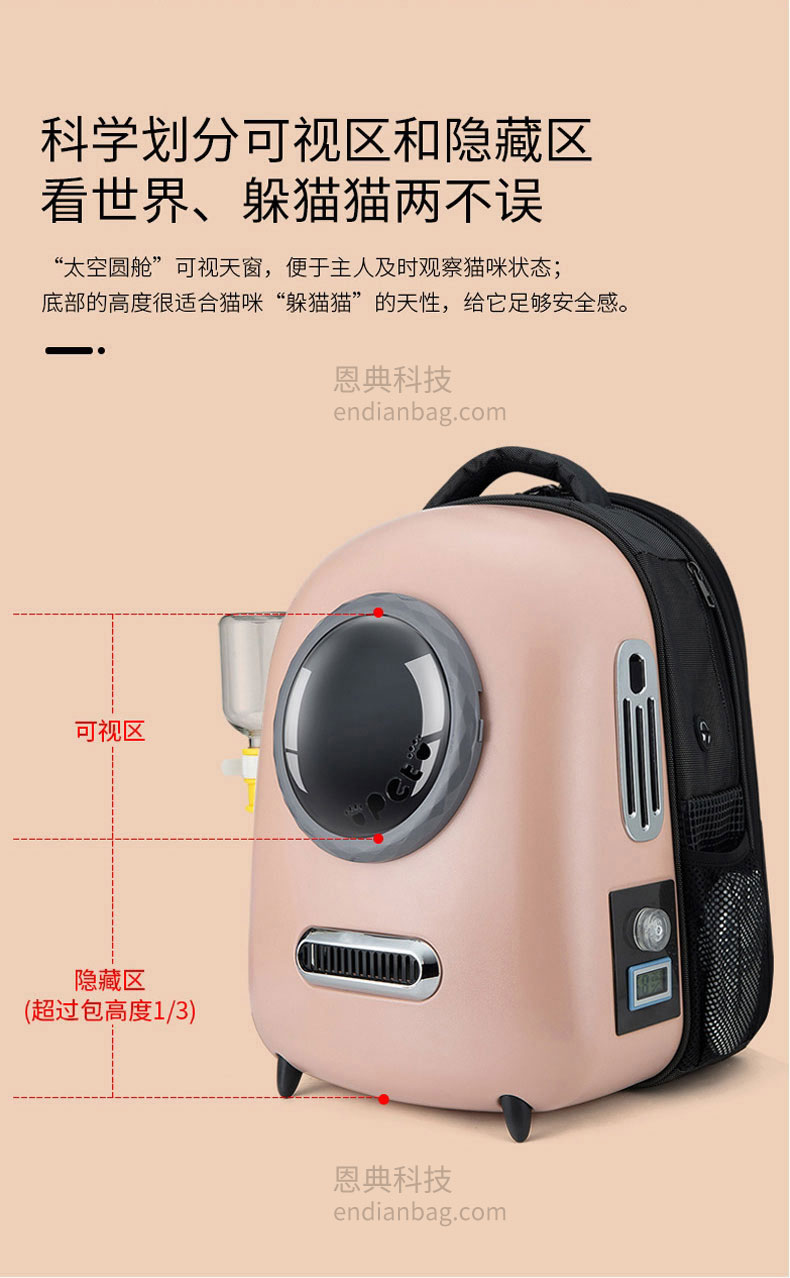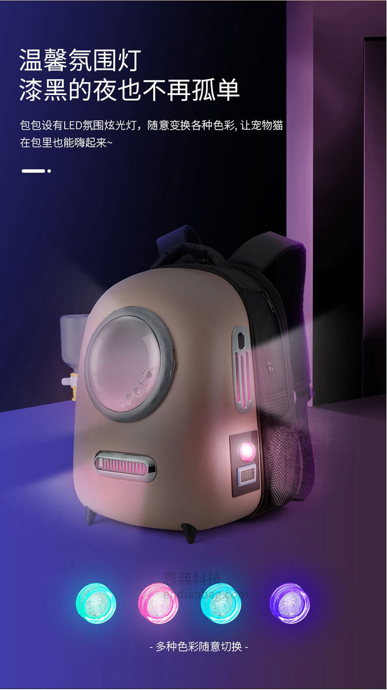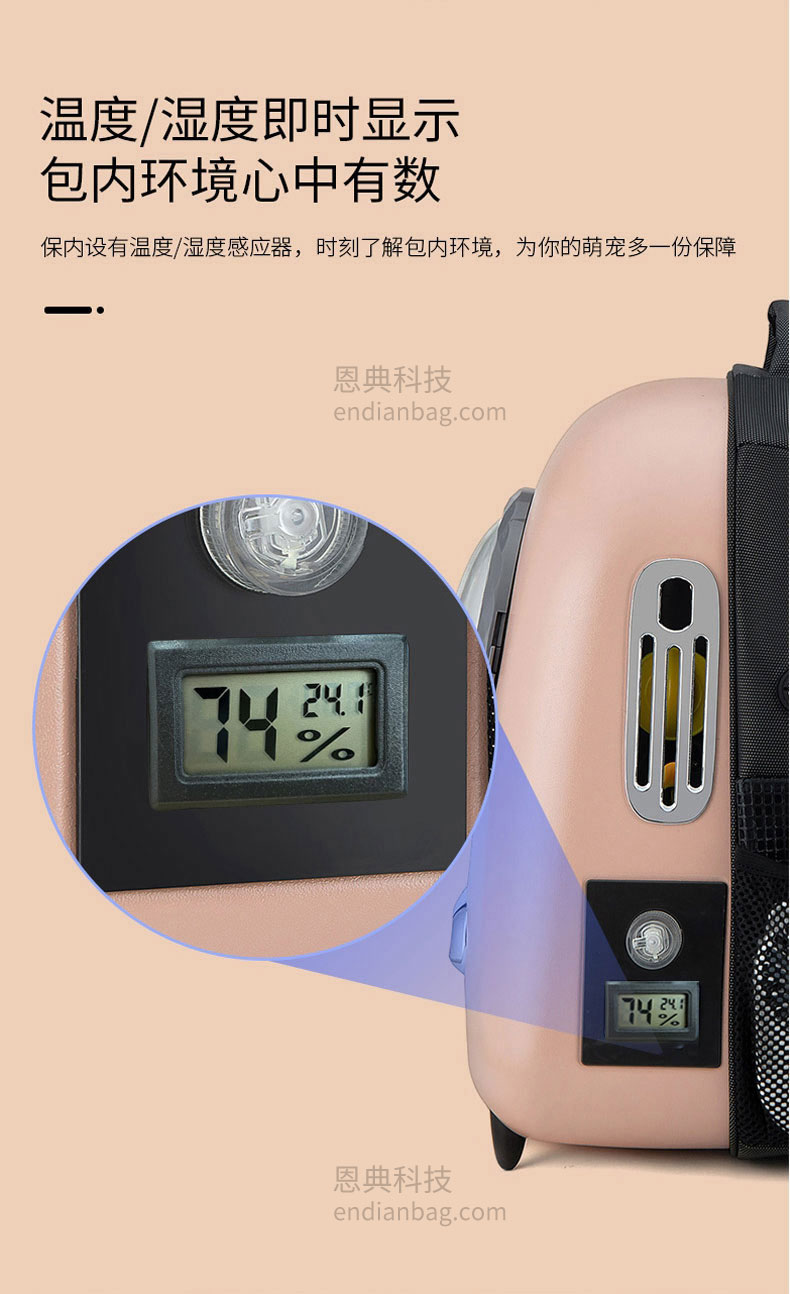 智能太空宠物包定制三面进气格栅设计,环绕式通风。包内设有温度/湿度感应器,时刻了解包内环境。包包设有LED氛围炫光灯,随意变换各种色彩。包包内里立体大空间,宠物可随意变换姿势。减震背板,科技新型材质背带,均匀分散受力减轻背负压力,中空网孔结构。宠物包定制请认准豪门国际科技背包厂家。豪门国际科技是一家拥有25年背包定制经验的箱包厂家,自建15000㎡工业园、16条智能生产线、32人设计研发团队,合作伙伴有新秀丽、阿里巴巴等企业。所以,豪门国际科技是您值得信赖、值得选择的背包厂家。