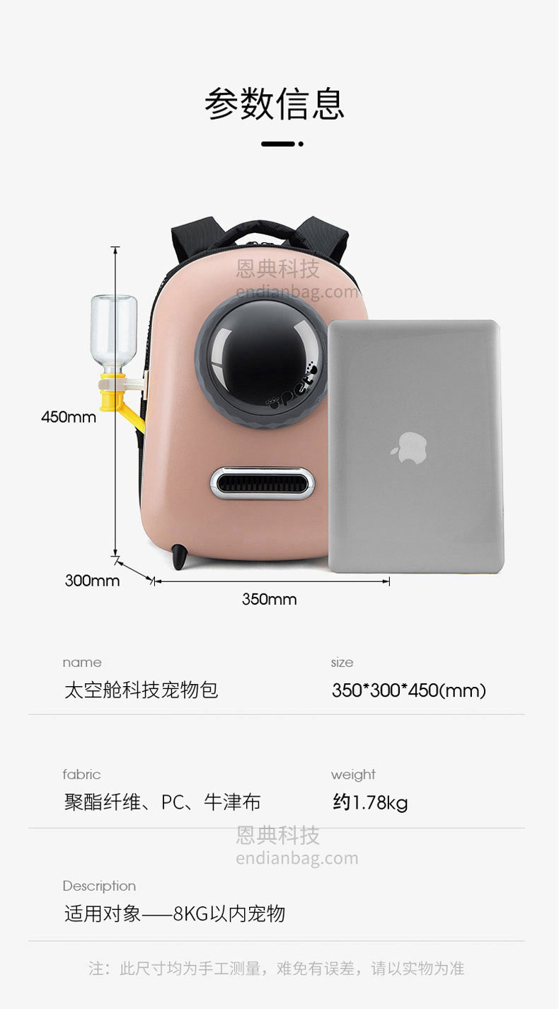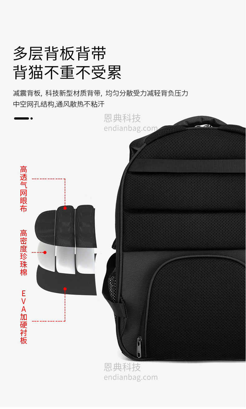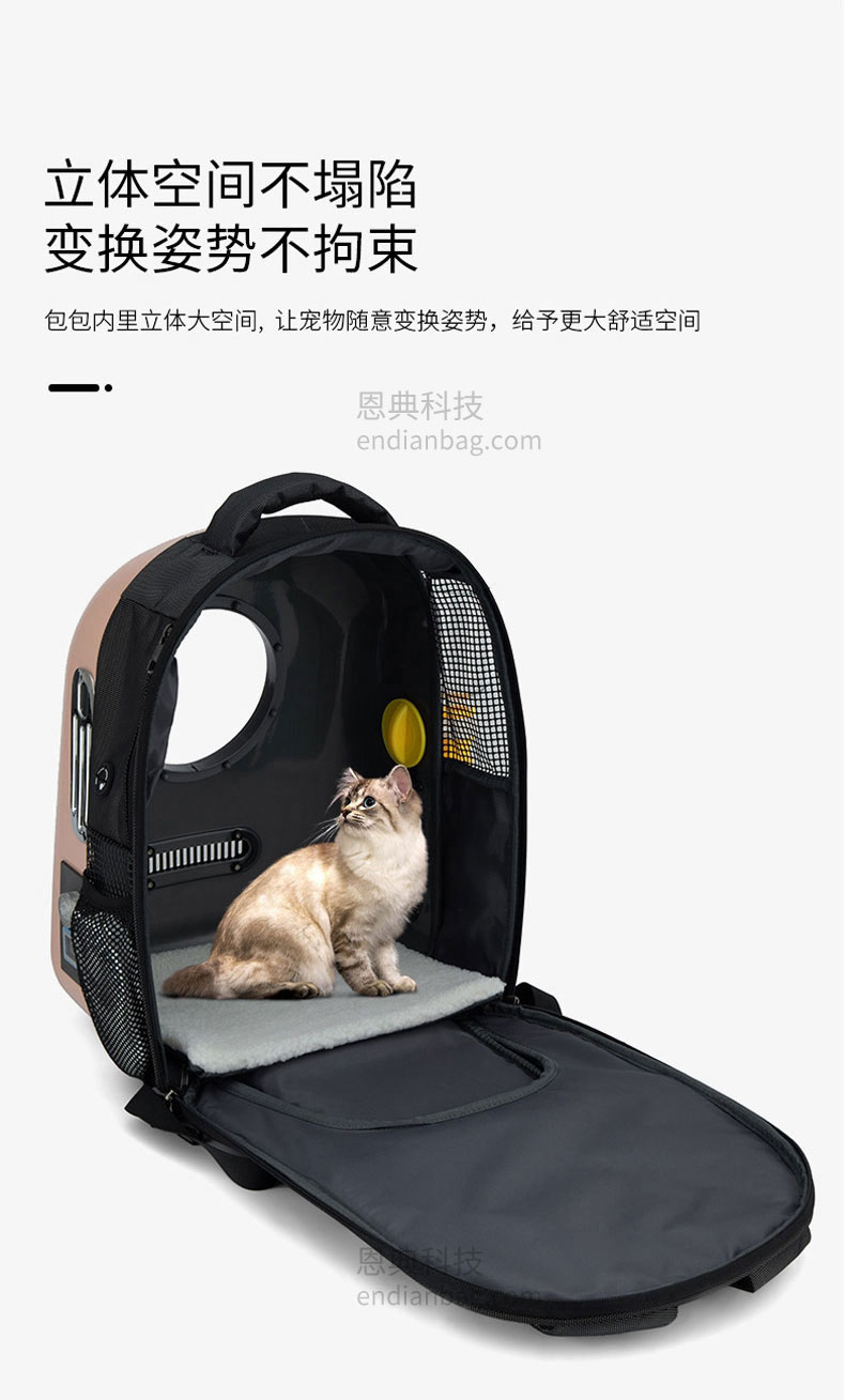 智能太空宠物包定制三面进气格栅设计,环绕式通风。包内设有温度/湿度感应器,时刻了解包内环境。包包设有LED氛围炫光灯,随意变换各种色彩。包包内里立体大空间,宠物可随意变换姿势。减震背板,科技新型材质背带,均匀分散受力减轻背负压力,中空网孔结构。宠物包定制请认准豪门国际科技背包厂家。豪门国际科技是一家拥有25年背包定制经验的箱包厂家,自建15000㎡工业园、16条智能生产线、32人设计研发团队,合作伙伴有新秀丽、阿里巴巴等企业。所以,豪门国际科技是您值得信赖、值得选择的背包厂家。