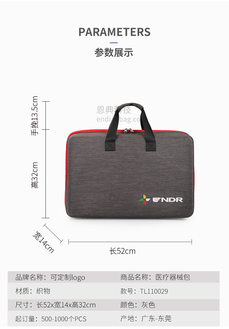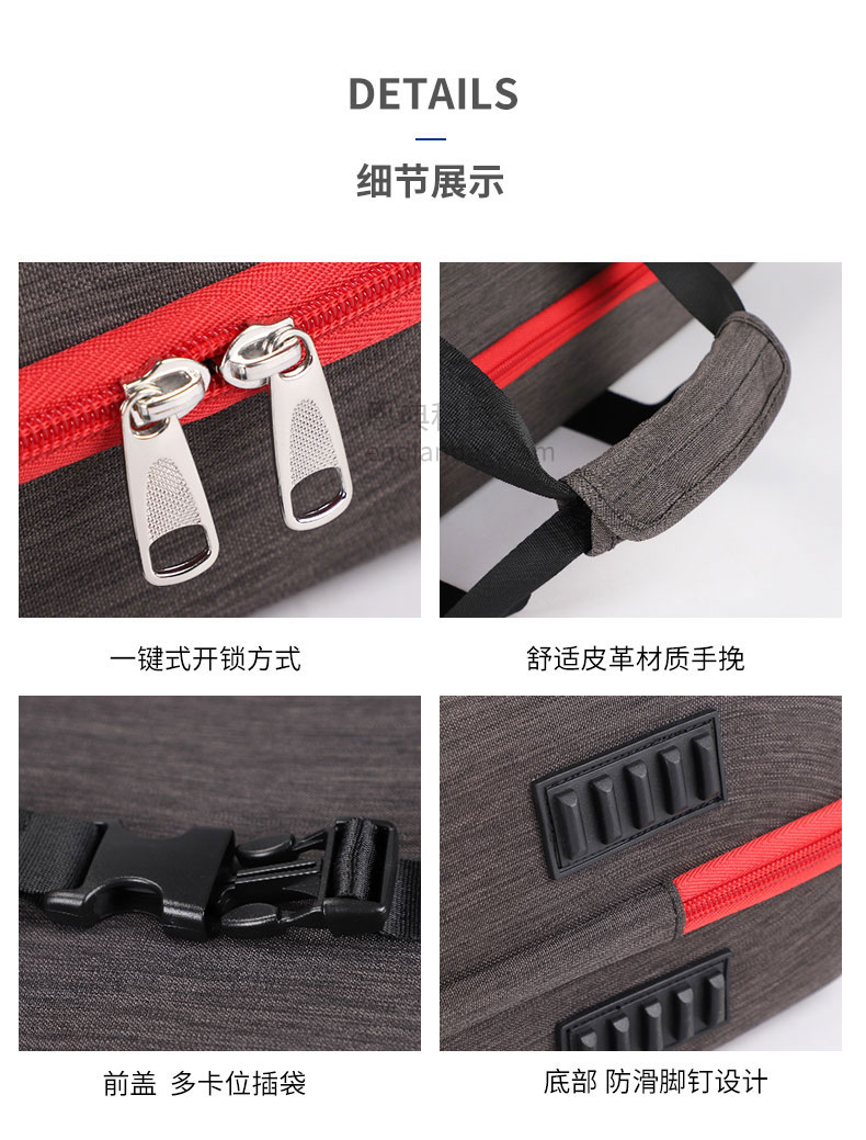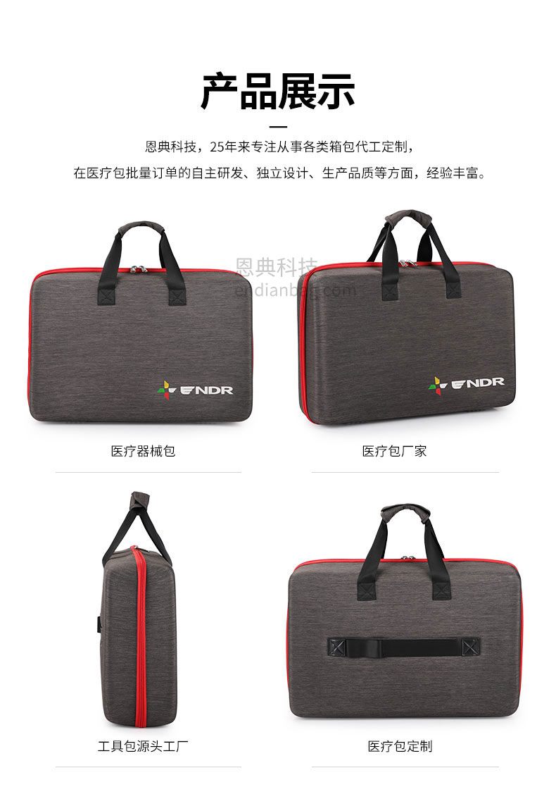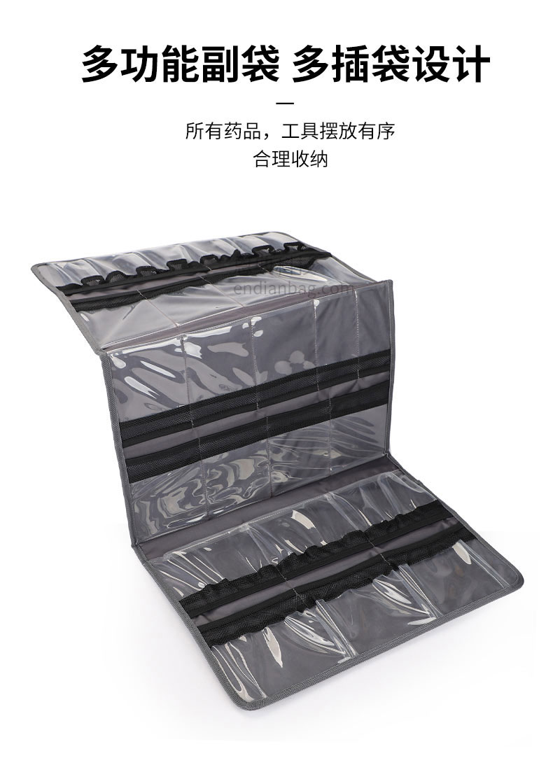 医疗器械包定制大容量主仓,分区收纳,让物品井然有序,多功能副袋多插袋设计,所有药品工具摆放有序。医疗包定制请认准豪门国际科技。豪门国际科技25年代工定制经验,自建15000㎡工业园、16条智能生产线、32人设计研发团队,合作伙伴有新秀丽、阿里巴巴等企业,豪门国际科技值得信赖。定制热线:18575391373