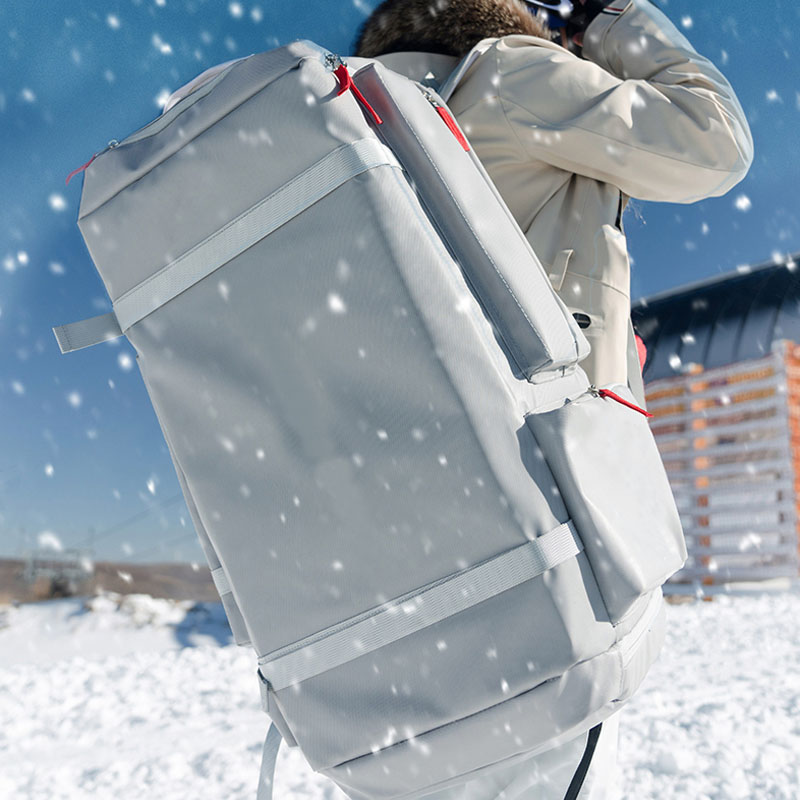 大容量滑雪包定制升级TPU材料三级防水技术;55L干湿分区,科学收纳;S型肩带设计受力分布均匀,储物袋压胶防水拉链,防止雨雪侵入;EVA硬壳式背板,导汗LOGO,促进空气流通。滑雪包定制请认准广东豪门国际科技,25年箱包行业生产定制经验,自建1.5万平米工业园,8000平米工作区,462名艺师,16条生产线,日产量可达13000Pcs。自有实验室拥有恒温恒湿、拉力、盐雾、破裂、拉链往复等检测设备,从原材料到成品每一个环节都经严格的检测,豪门国际皮具所使用的材料均达到国际环保REACH标准,客户中标率和返单率高达70%,5年畅销达到500万个。从开发到生产,专人为您把关每一个环节做好跟进服务。定制热线:18575391373