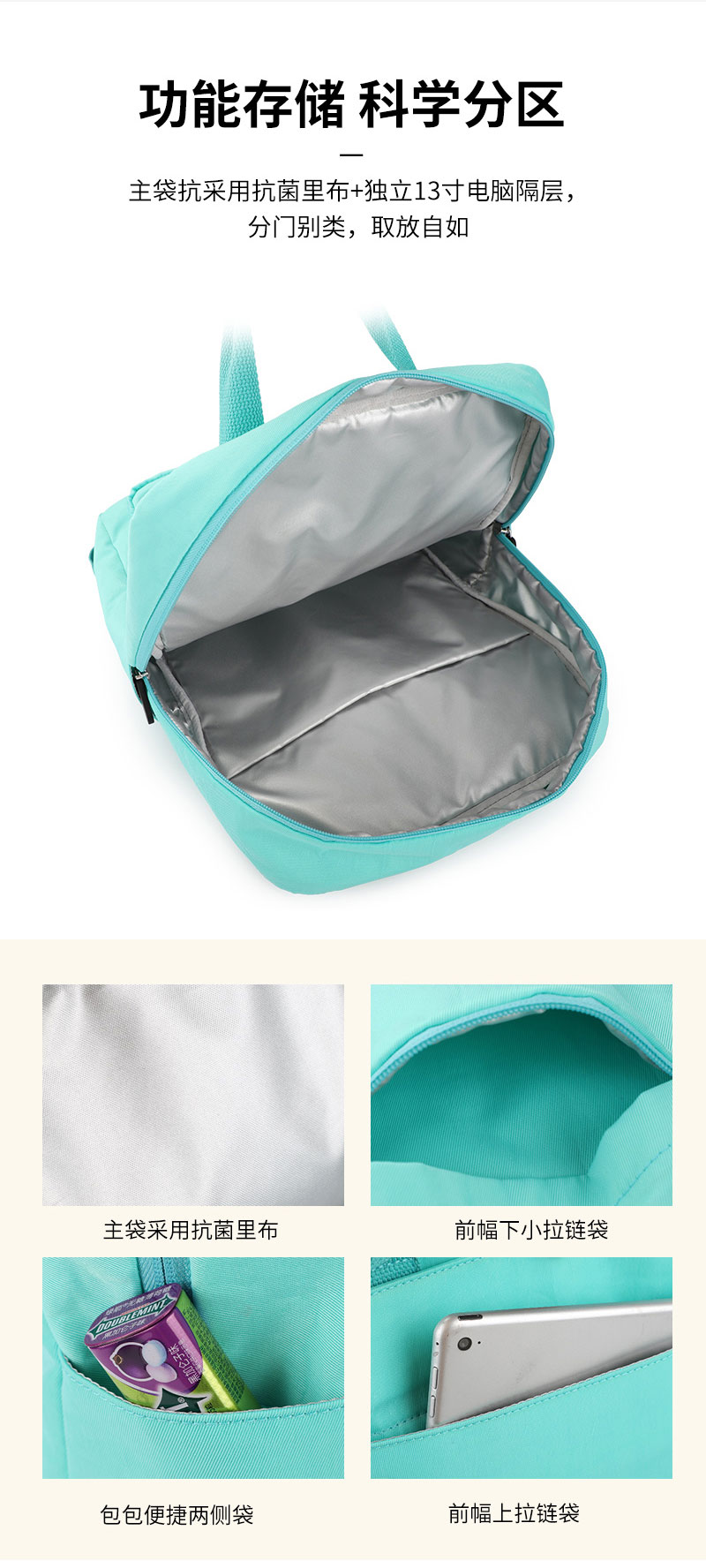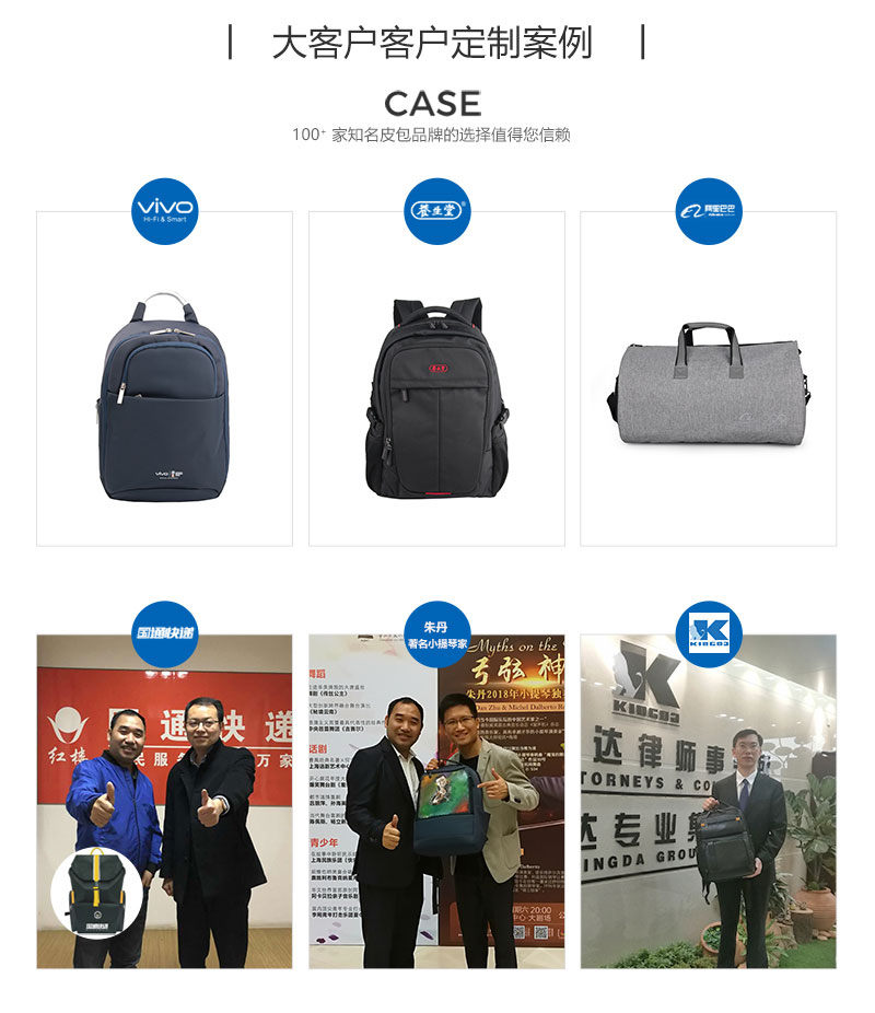 韩版时尚潮流双肩包定制采用高密度织物,防泼溅、防勾蹭。隐藏式肩带一包多用,可以单肩/手提/双肩。功能存储科学分区,主袋采用抗菌里布+独立13寸电脑隔层,分门别类,取放自如。结实手挽,手感舒适,防刮耐磨。双拉链设计,开合顺畅,不卡顿。适合日常出行、逛街。双肩包定制请认准豪门国际科技双肩包厂家。豪门国际科技是一家拥有24年双肩包定制经验的双肩包厂家,自建15000㎡工业园、16条智能生产线、32人设计团队,合作伙伴有新秀丽、阿里巴巴等企业。所以,豪门国际科技是您值得信赖、值得选择的双肩包厂家。定制热线:185-7539-1373