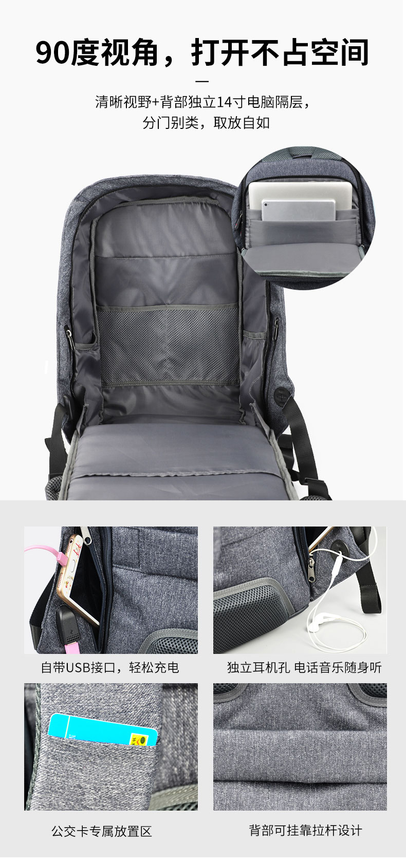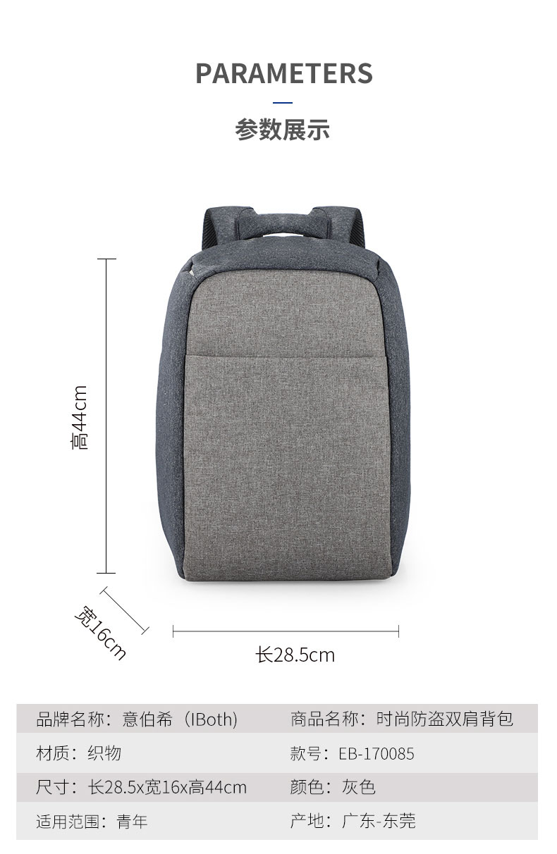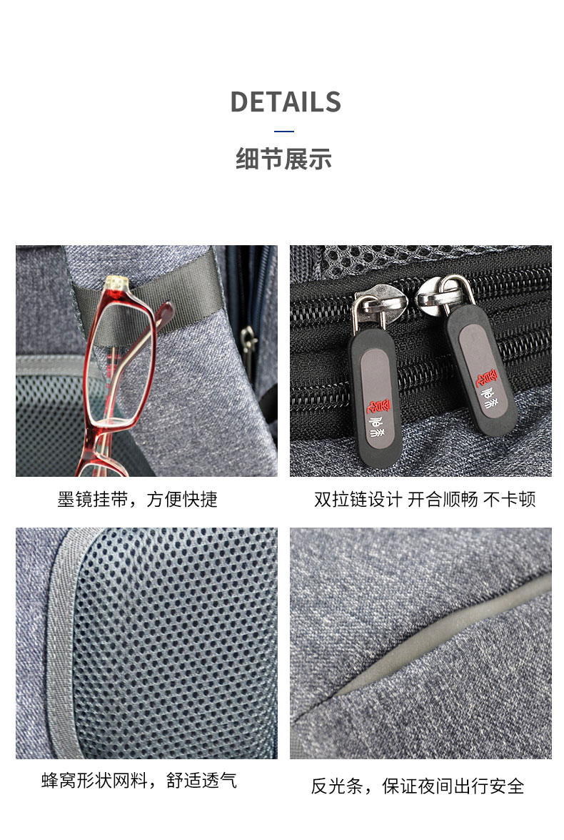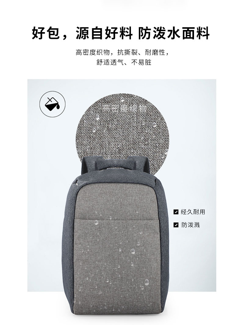 时尚立体防盗双肩背包定制采用高密度织物防泼水面料,抗撕裂、耐磨,舒适透气不易脏。背部隐藏拉链,保险箱式无缝防盗结构。可定制私人或企业logo,背部独立14寸电脑隔层,分门别类取放自如。自带USB接口轻松充电,独立耳机孔。双肩包的主要特点是方便携带,解放双手,轻负重、耐磨佳,为外出提供了方便。根据材质的不同又会成帆布包,牛津布包,尼龙布包。双肩包定制请认准豪门国际科技双肩包厂家。豪门国际科技是一家拥有24年双肩包定制经验的双肩包厂家,自建15000㎡工业园、16条智能生产线、32人设计团队,合作伙伴有新秀丽、阿里巴巴等企业。所以,豪门国际科技是您值得信赖、值得选择的双肩包厂家。定制热线:18575391373