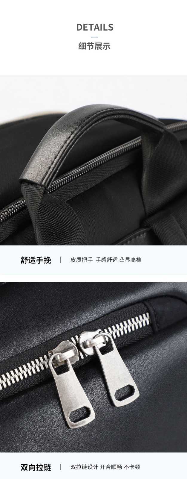 男士时尚拼接双肩背包定制精选面料,遇水不易渗透,耐磨耐勾蹭。S型肩带加宽设计,使肩部均衡受力,减小出行背负压力。功能存储科学分区,两大主袋+独立电脑隔层,分门别类,取放自如。舒适手挽,皮质把手,凸显高档。双拉链设计,开合顺畅,不卡顿。可根据身高和舒适度调节肩带,付费可定制私人LOGO。包包底部采用打枣加固,适合日常通勤、逛街、上班等。双肩包定制请认准豪门国际科技双肩包厂家。 广东背包工厂这边有自建15000平方米生产基地,减少了租金的压力,员工400多名,引进国外多条自动化设备,拥有16条智能生产线,在生产效率方面,比传统模式提高30%以上;豪门国际皮具如此规模和实力,3天打样,7天出货, 能找到这么大规模的生产厂家,再也不用但心交不了货了。定制热线:18575391373