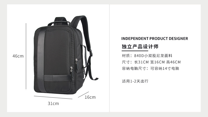 多功能背负双肩包定制采用新型科技面料,防撕裂防震,科学减负,适合人体工程学减负系统。双肩包定制请认准豪门国际科技双肩包厂家。豪门国际科技是一家拥有25年双肩包定制经验的双肩包厂家,自建15000㎡工业园、16条智能生产线、32人设计研发团队量身定制解决方案,合作伙伴有新秀丽、阿里巴巴等企业。所以,豪门国际科技是您值得信赖、值得选择的双肩包厂家。定制热线:18575391373