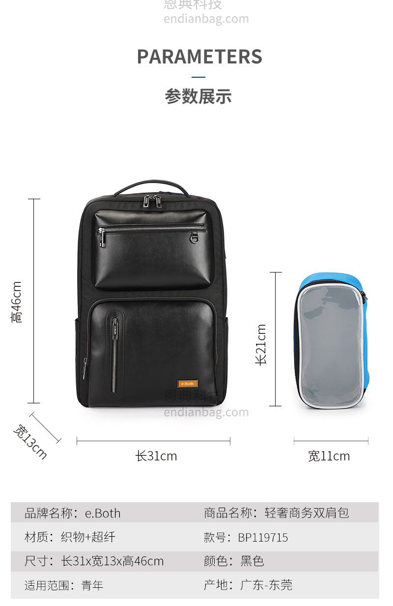 大容量多隔层,功能存储,科学分区,商务休闲适用;
