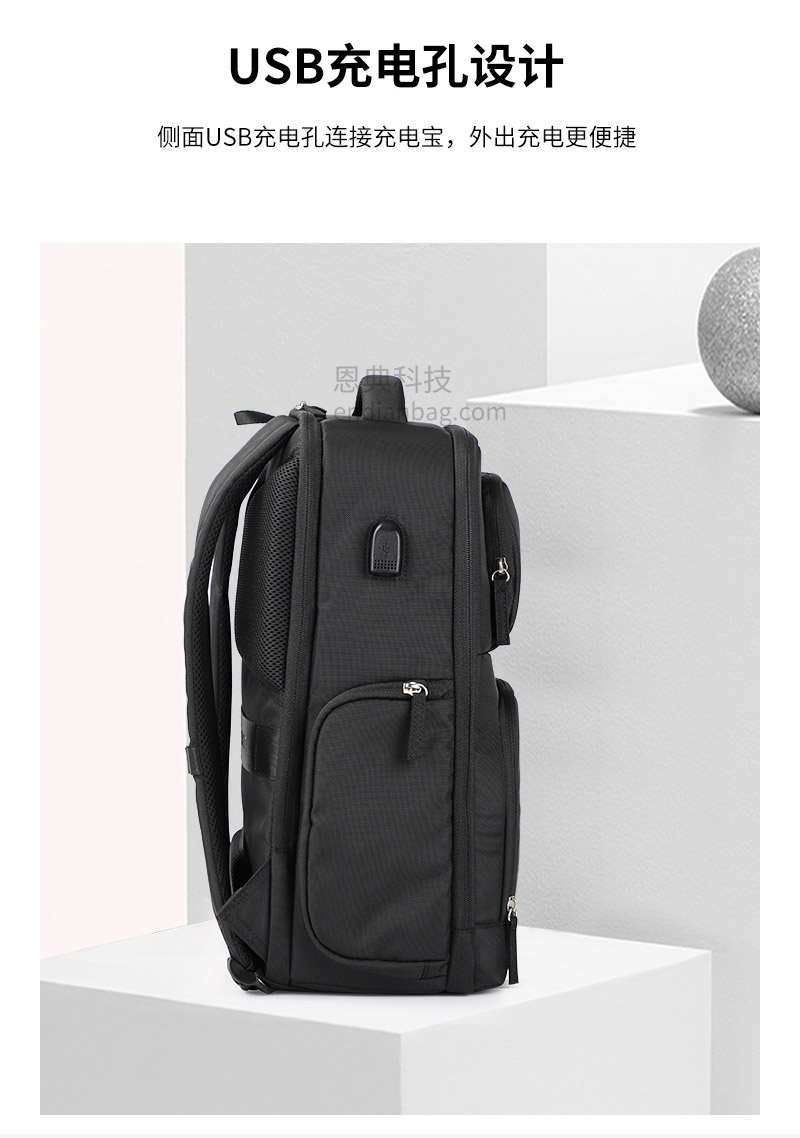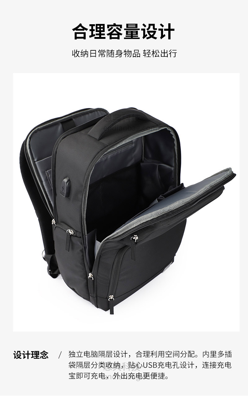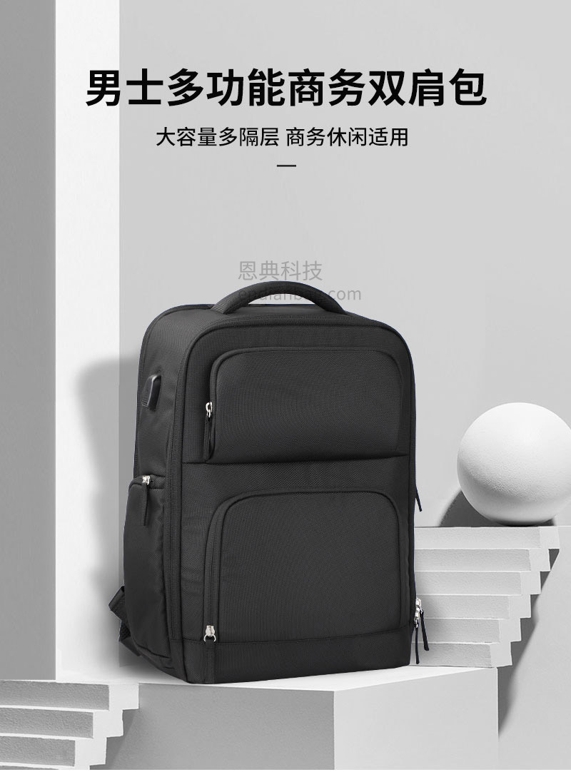 男士多功能商务双肩包定制大容量多隔层,适用商务休闲。立体网孔组织三明治面料,耐磨适用,不起球。840D小双股料,耐磨防撕裂,拉力强,面料结实,更耐用。USB充电孔设计,外出充电更便捷。独立电脑隔层设计,合理利用空间分配。商务双肩包定制请认准广东豪门国际科技,25年箱包行业生产定制经验,自建1.5万平米工业园,8000平米工作区,462名艺师,16条生产线,日产量可达13000Pcs。自有实验室拥有恒温恒湿、拉力、盐雾、破裂、拉链往复等检测设备,从原材料到成品每一个环节都经严格的检测,豪门国际皮具所使用的材料均达到国际环保REACH标准,客户中标率和返单率高达70%,5年畅销达到500万个。从开发到生产,专人为您把关每一个环节做好跟进服务。定制热线:18575391373