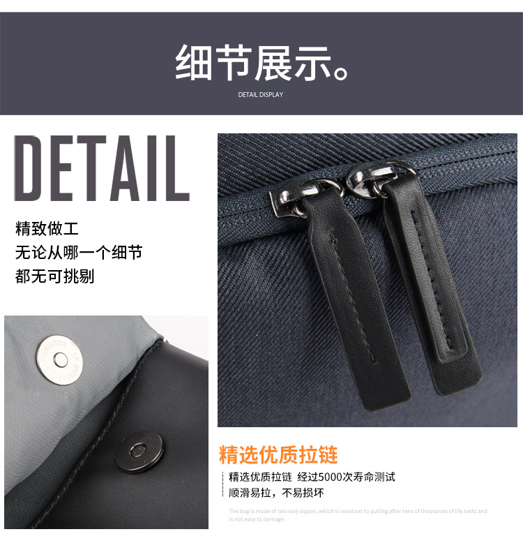 休闲电脑包定制精选优质面料,手感细腻,清晰纹路。便捷侧袋,可放入水杯或雨伞等小物品。精选优质拉链,经过5000次寿命测试,顺滑易拉,不易顺坏。结实手挽,手感舒适不嘞手。包包手挽处打枣加固,增加包包牢固性。双肩包的主要特点是方便携带,解放双手,轻负重、耐磨佳,为外出提供了方便。根据材质的不同又会成帆布包,牛津布包,尼龙布包。双肩包定制请认准豪门国际科技双肩包厂家。豪门国际科技是一家拥有24年双肩包定制经验的双肩包厂家,自建15000㎡工业园、16条智能生产线、32人设计团队,合作伙伴有新秀丽、阿里巴巴等企业。所以,豪门国际科技是您值得信赖、值得选择的双肩包厂家。 定制热线:185-7539-1373