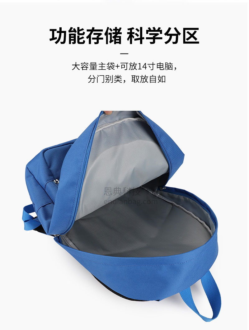 大容量主袋+可放14寸电脑,分门别类,取放自如;