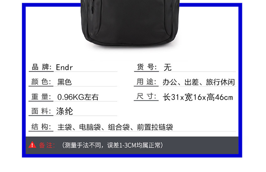 差旅出行双肩背包定制沉着时尚,精细外观设计。简洁大容量主袋,可容纳随身衣物,笔记本以及个人日常用品。防盗背袋设计百毒不侵,精选优质拉链,黑色双向拉头,顺滑不卡链,背包两侧可放纸雨伞或水壶等。广东豪门国际科技创办于1997年,致力于背包、双肩包设计生产销售的箱包生产厂家,自有厂房1.5万平米,引进日本JUKI和BROTHER等高端品牌机器设备。豪门国际 提供颜色,材料都可以选择,如果没有您喜欢的款式,可以免费设计。大部分是样品,非现货,少量现货,请咨询客服,接受来样来图定制!定制热线:185-7539-1373
