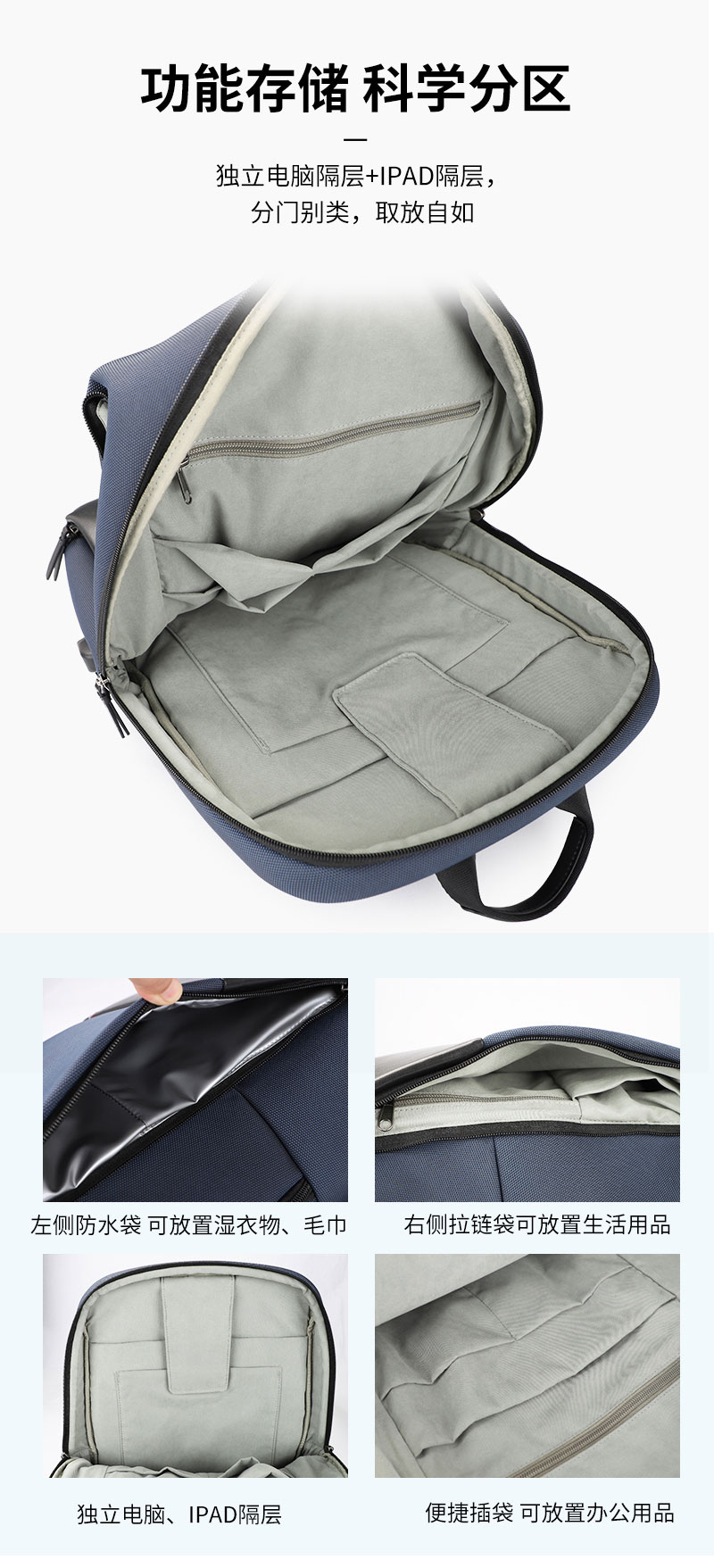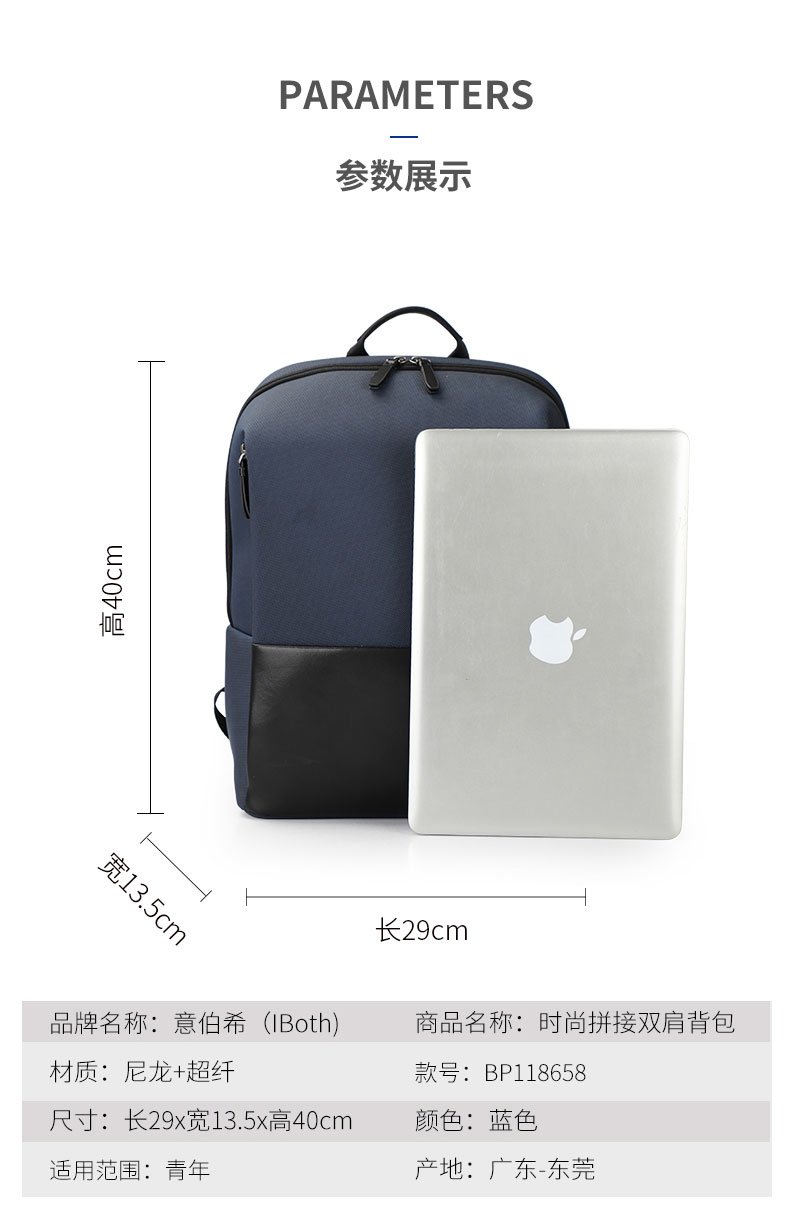 男士时尚拼接双肩包定制精选面料,防刮耐磨,遇水不易渗透。S型肩带加宽设计,使肩部均衡受力,减小出行背负压力。功能存储科学分区,独立电脑隔层+IPAD隔层,分门别类,取放自如。双肩包的主要特点是方便携带,解放双手,轻负重、耐磨佳,为外出提供了方便。根据材质的不同又会成帆布包,牛津布包,尼龙布包。豪门国际科技双肩包生产厂承接品牌包包代工及单位礼品定制,20多年专业定制生产经验,拥有自建厂房15000平方,引进日本JUKI和BROTHER等高端品牌机器设备,并于2016年4月成功上市新三板。豪门国际 提供颜色,材料都可以选择,如果没有您喜欢的款式,可以免费设计。大部分是样品,非现货,少量现货,请咨询客服,接受来样来图定制!定制热线:185-7539-1373