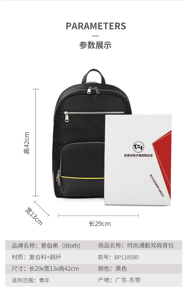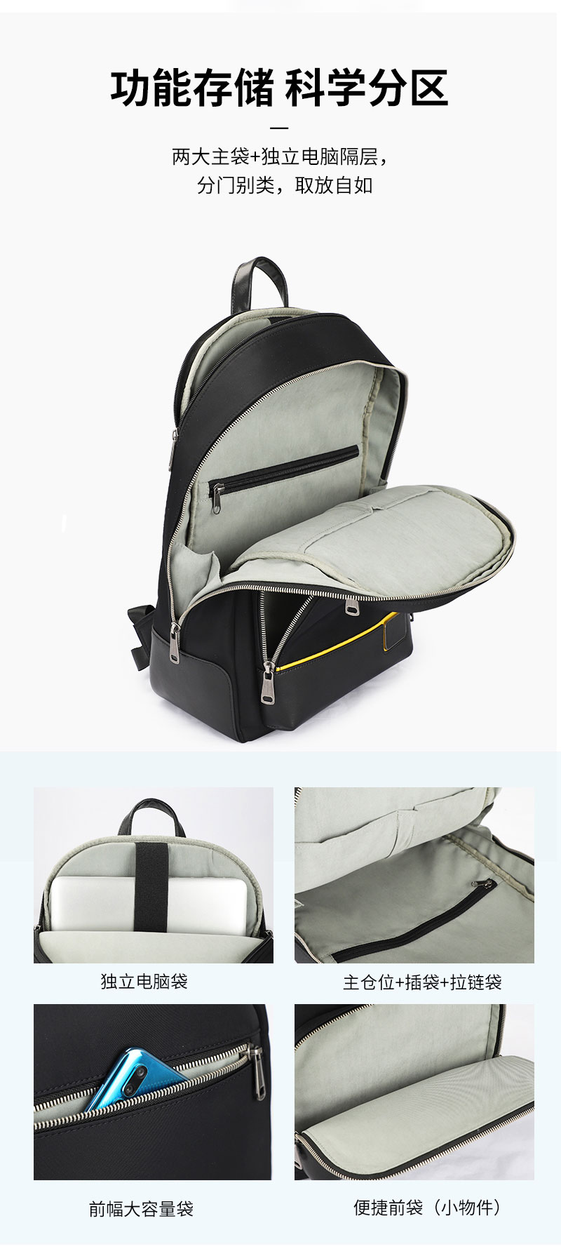 时尚通勤双肩背包定制精选面料,防刮耐磨,遇水不易渗透。S型肩带加宽设计,使肩部均衡受力,减小出行背负压力。功能存储科学分区,两大主袋+独立电脑隔层,分门别类,取放自如。双肩包不同的用途又分成,双肩电脑背包(Computer Backpack),运动双肩包(Sports Backpack),时尚双肩包(Fashion Backpack),学校双肩包背(School Backpack)和束口绳包,军用背包(Military Backpack),登山包等等。根据材质的不同又会成帆布包,牛津布包,尼龙布包。广东豪门国际科技创办于1997年,致力于背包、双肩包设计生产销售的箱包生产厂家,自有厂房1.5万平米,引进日本JUKI和BROTHER等高端品牌机器设备。豪门国际 提供颜色,材料都可以选择,如果没有您喜欢的款式,可以免费设计。大部分是样品,非现货,少量现货,请咨询客服,接受来样来图定制!定制热线:185-7539-1373