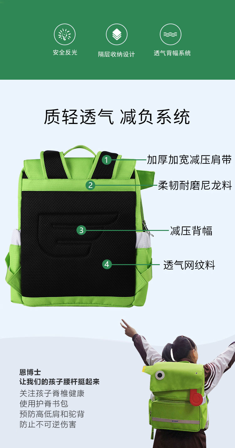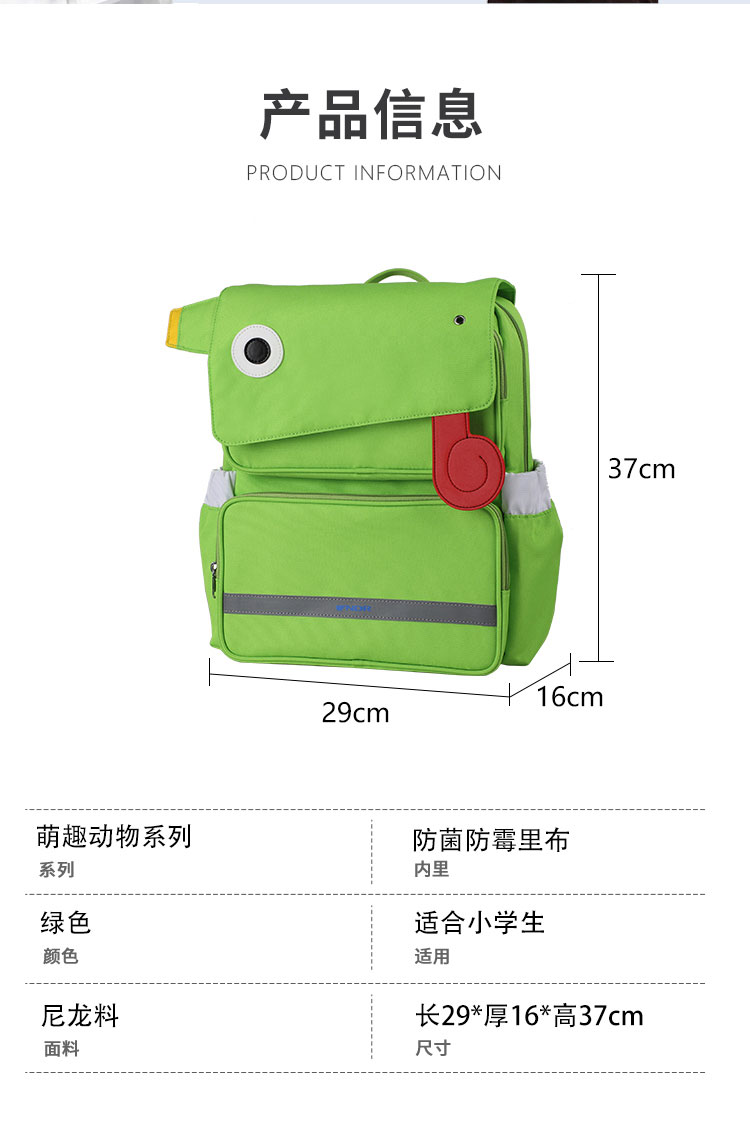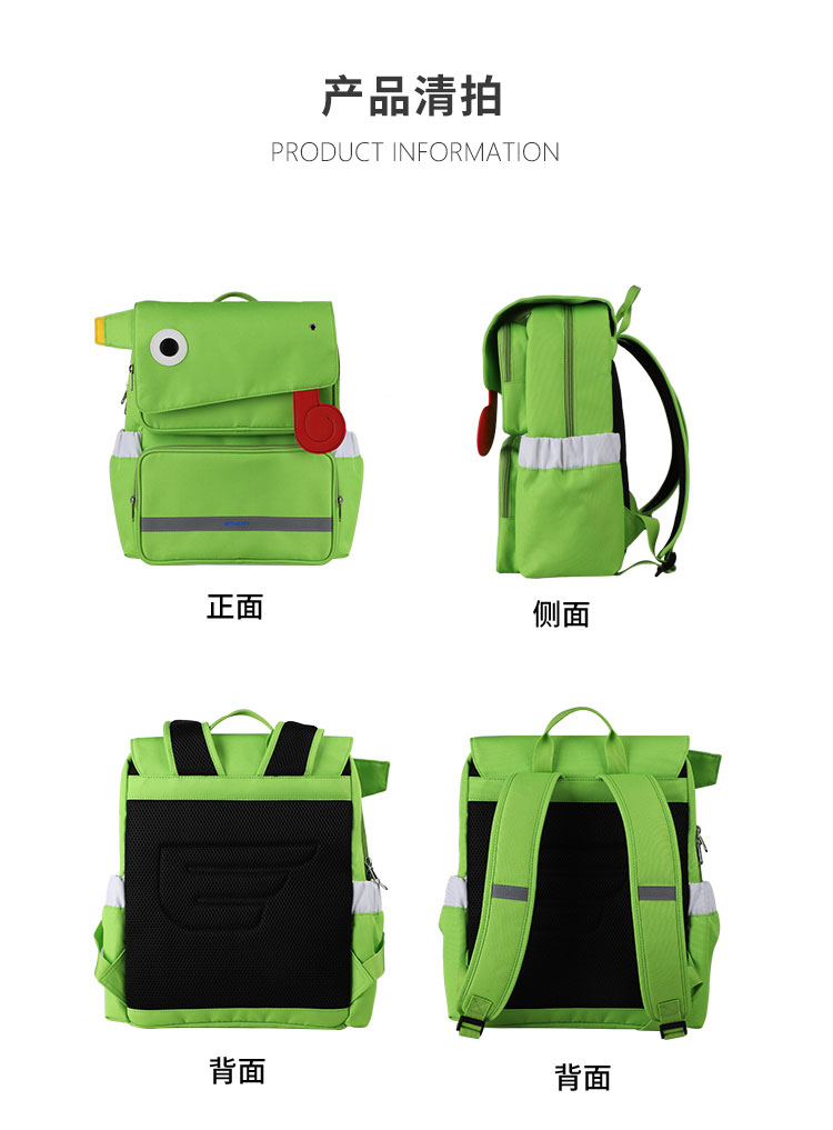 学生书包定制萌趣变色龙系列关注孩子脊椎健康,使用护脊书包,预防高低肩和驼背。两个大容量前幅袋,方便孩子存取随身物品。学生书包定制请认准广东豪门国际科技,25年箱包行业生产定制经验,自建1.5万平米工业园,8000平米工作区,462名艺师,16条生产线,日产量可达13000Pcs。自有实验室拥有恒温恒湿、拉力、盐雾、破裂、拉链往复等检测设备,从原材料到成品每一个环节都经严格的检测,豪门国际皮具所使用的材料均达到国际环保REACH标准,客户中标率和返单率高达70%,5年畅销达到500万个。从开发到生产,专人为您把关每一个环节做好跟进服务。定制热线:18575391373