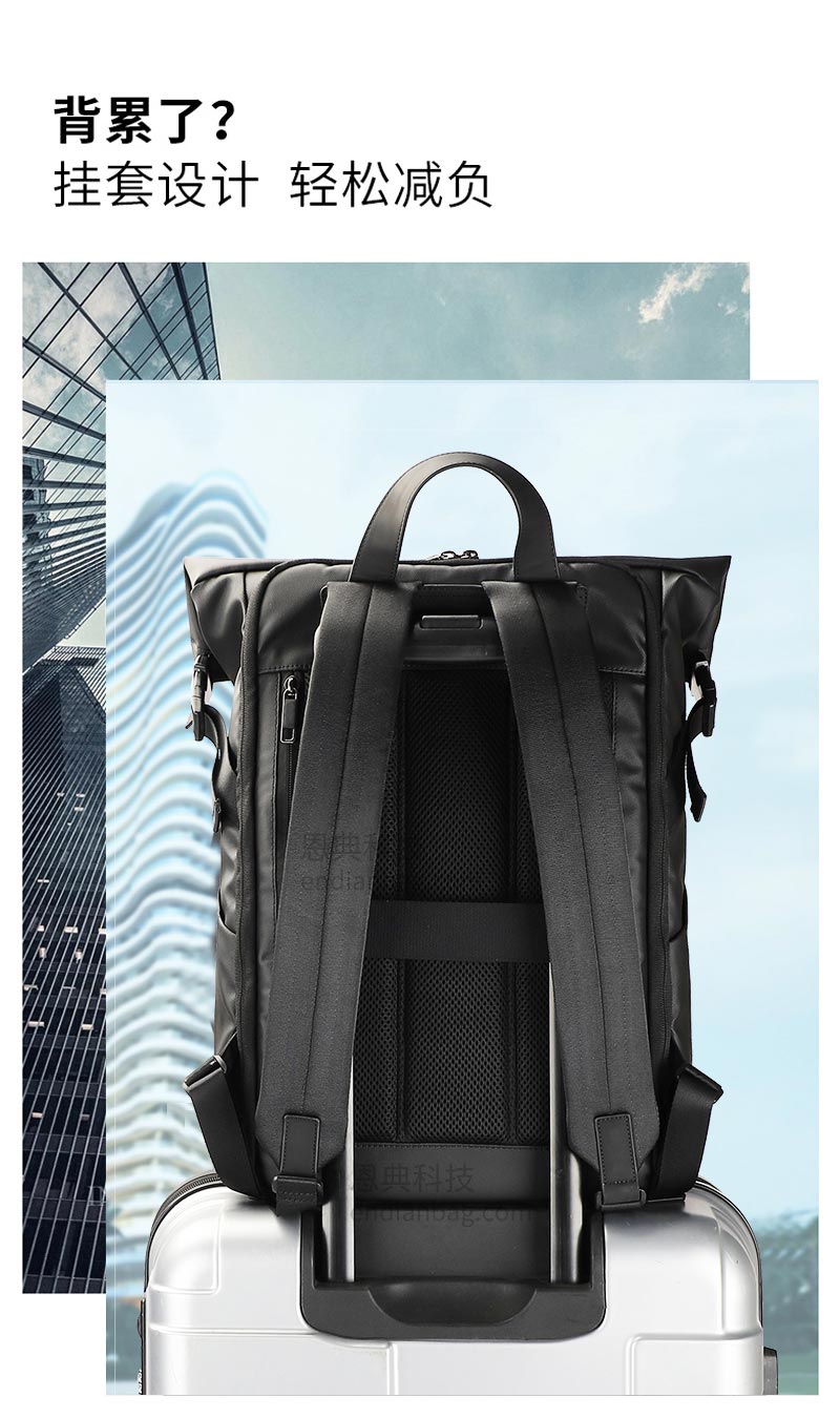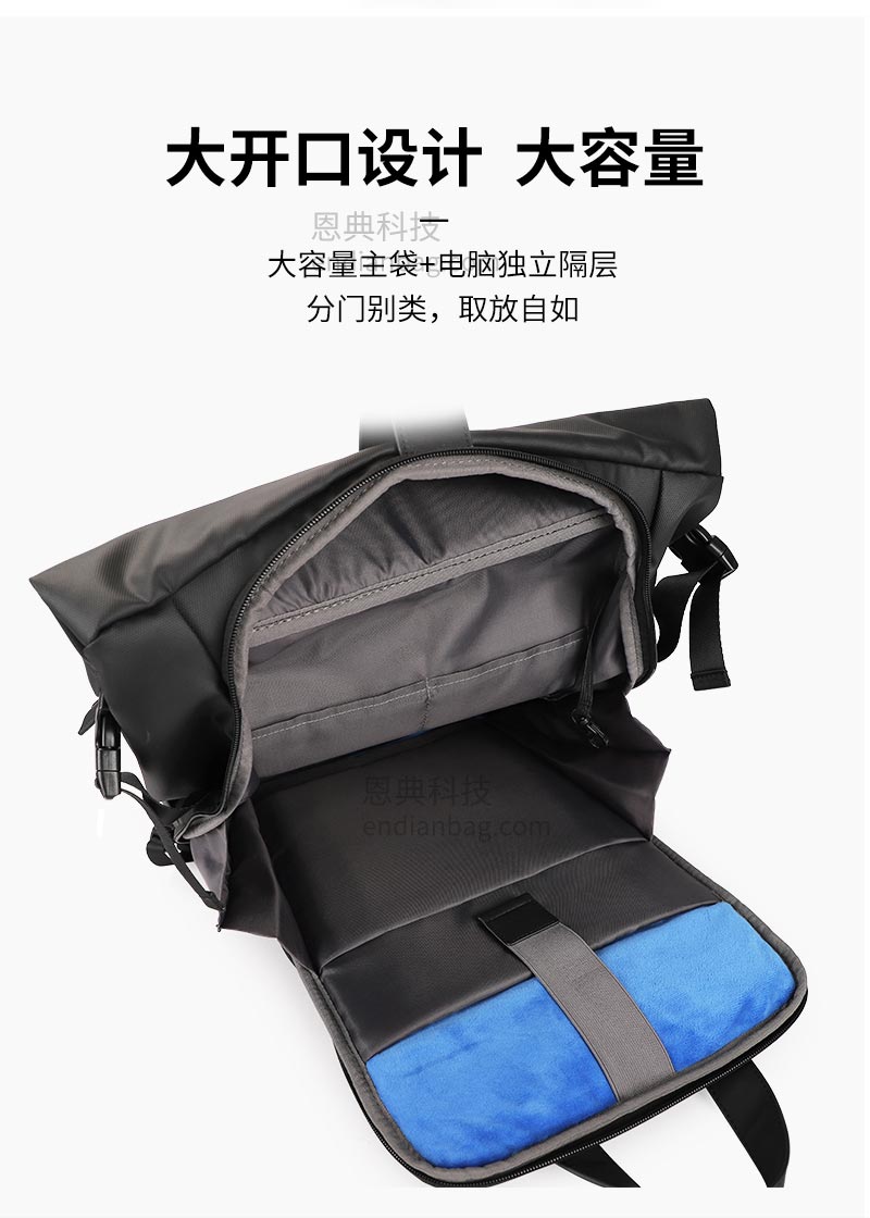 S型肩带,肩带加宽设计,肩部均匀受力,大容量主袋+电脑独立隔层;