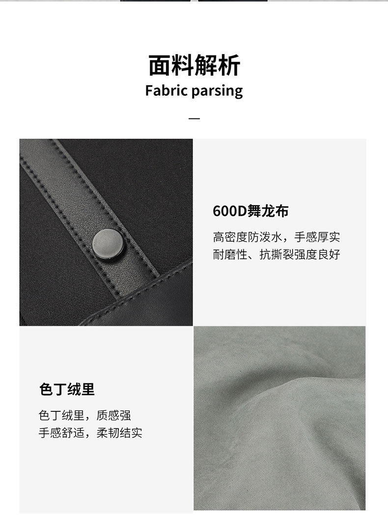 600D舞龙布,高密度防泼水,手感厚实,耐磨性,抗撕裂强度良好;