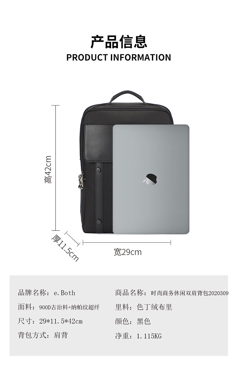 大容量主袋+电脑独立隔层,分门别类,取放自如;