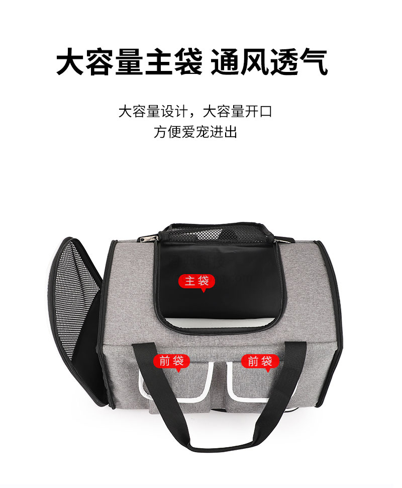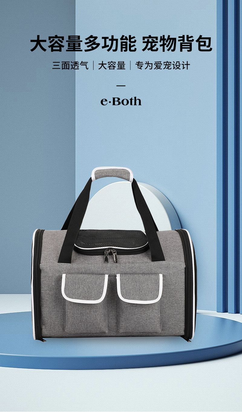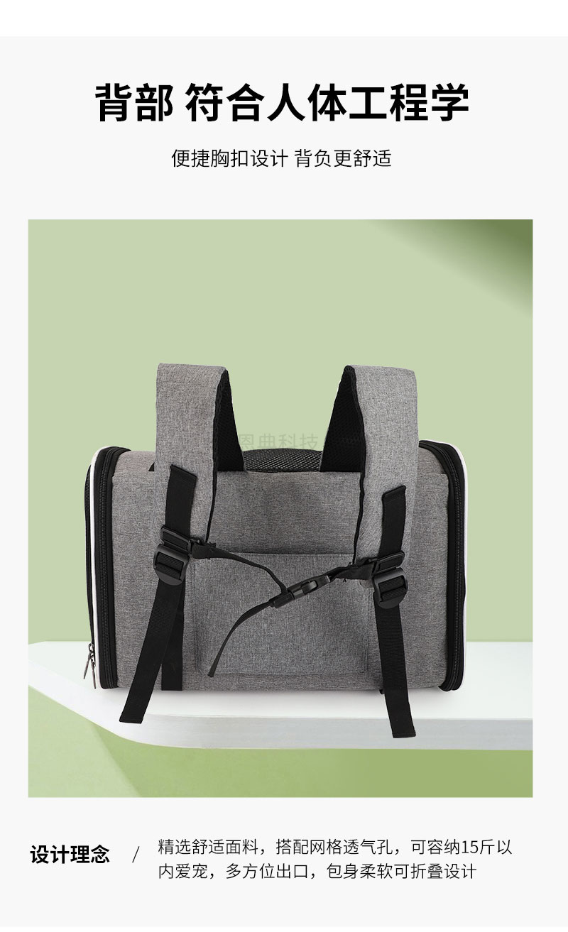 多功能宠物背包,精选舒适面料,搭配网格透气孔,三面透气孔,循环透气;