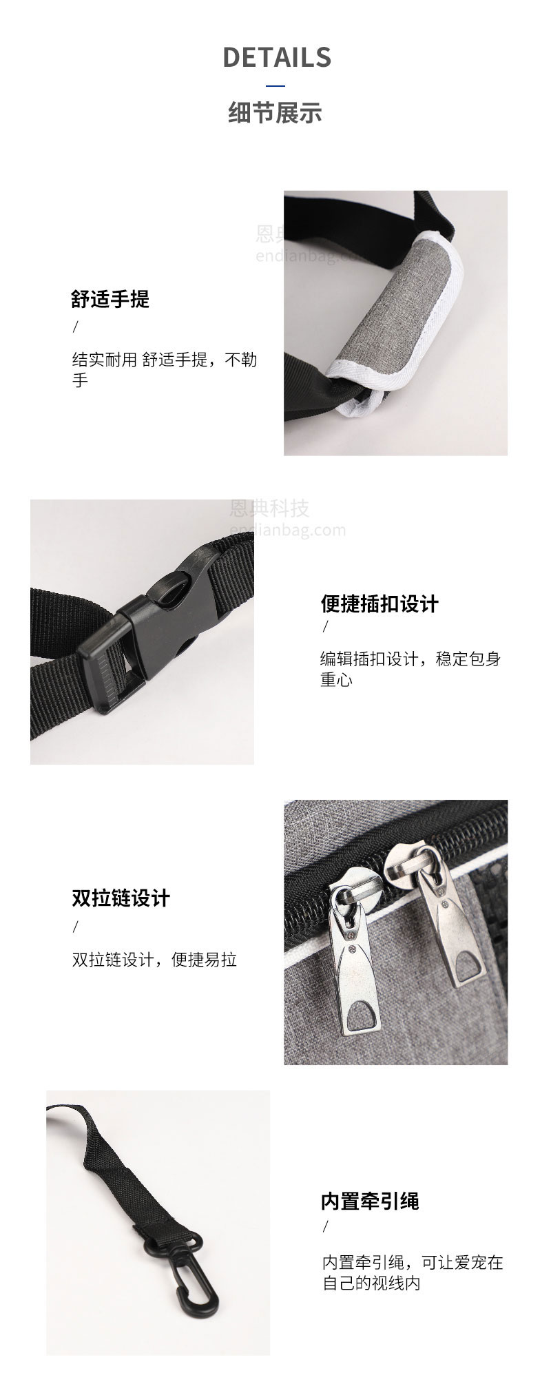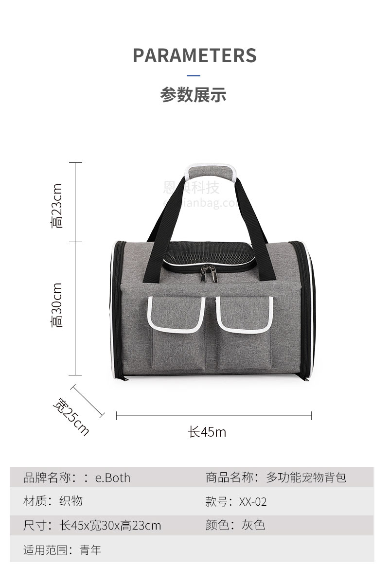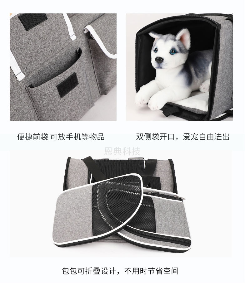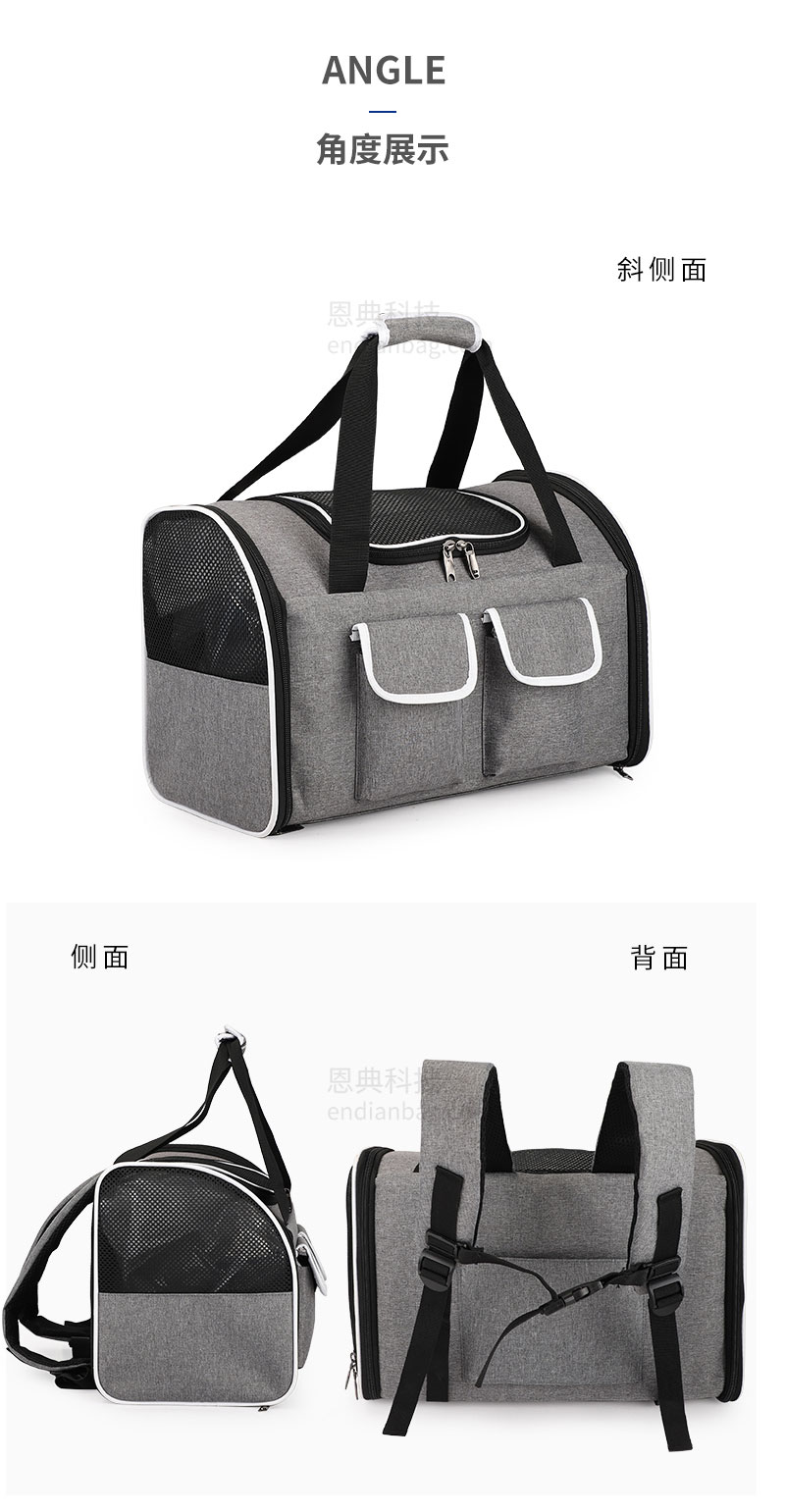 多功能宠物背包,精选舒适面料,搭配网格透气孔,三面透气孔,循环透气;