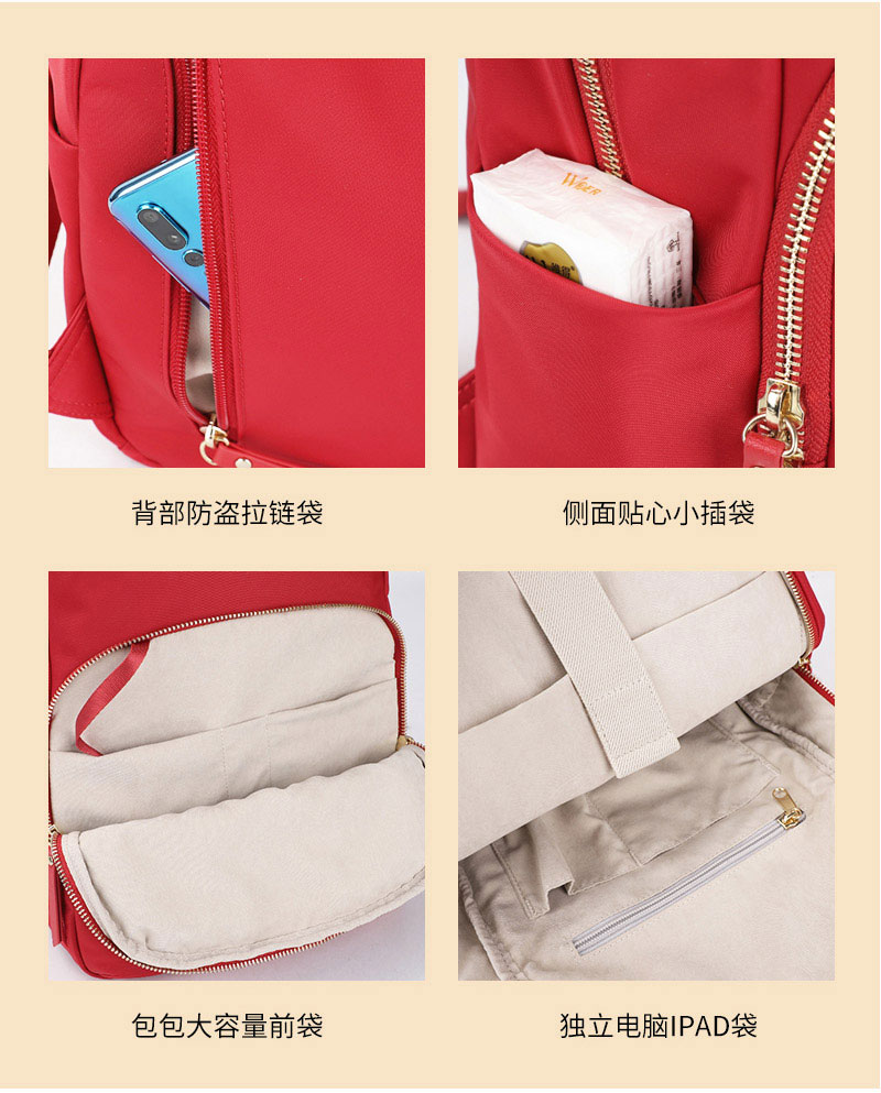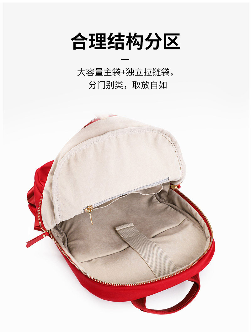 女士休闲轻便豪门国际:双肩包定制采用高密度织物,防泼溅防勾蹭。大容量主袋+独立拉链袋,分门别类,取放自如。舒适手挽,皮质把手,凸显高档。顺滑拉链配合时尚流苏拉头,肩带处拼接设计,不仅美观且不易断裂。包包底部采用打枣加固,可根据身高和舒适度调节肩带。适合短途出行、逛街等。女士包包定制,请认准豪门国际科技。豪门国际科技是一家以设计研发、生产销售、品牌打造为一体的智能双肩包生产厂家,产品时尚,外光精致,交货准时。定制热线:185-7539-1373