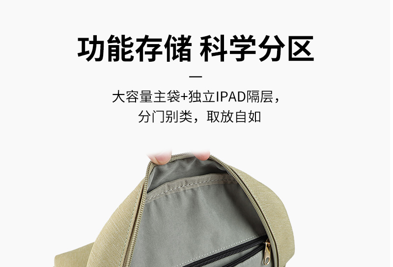 女士时尚简约双肩包定制精选面料,高密度织物,遇水不易渗透,耐磨耐勾蹭。S型肩带加宽设计,使肩部均衡受力,减小出行背负压力。功能存储科学分区,大容量主袋+独立IPAD隔层,分门别类,取放自如。舒适手挽,皮质把手,凸显高档。双拉链设计,开合顺畅,不卡顿。可根据身高和舒适度调节肩带,包包底部采用打枣加固,适合日常通勤、逛街、上班等。女士包包定制,请认准豪门国际科技。豪门国际科技是一家以设计研发、生产销售、品牌打造为一体的智能双肩包生产厂家,产品时尚,外光精致,交货准时!定制热线:185-7539-1373