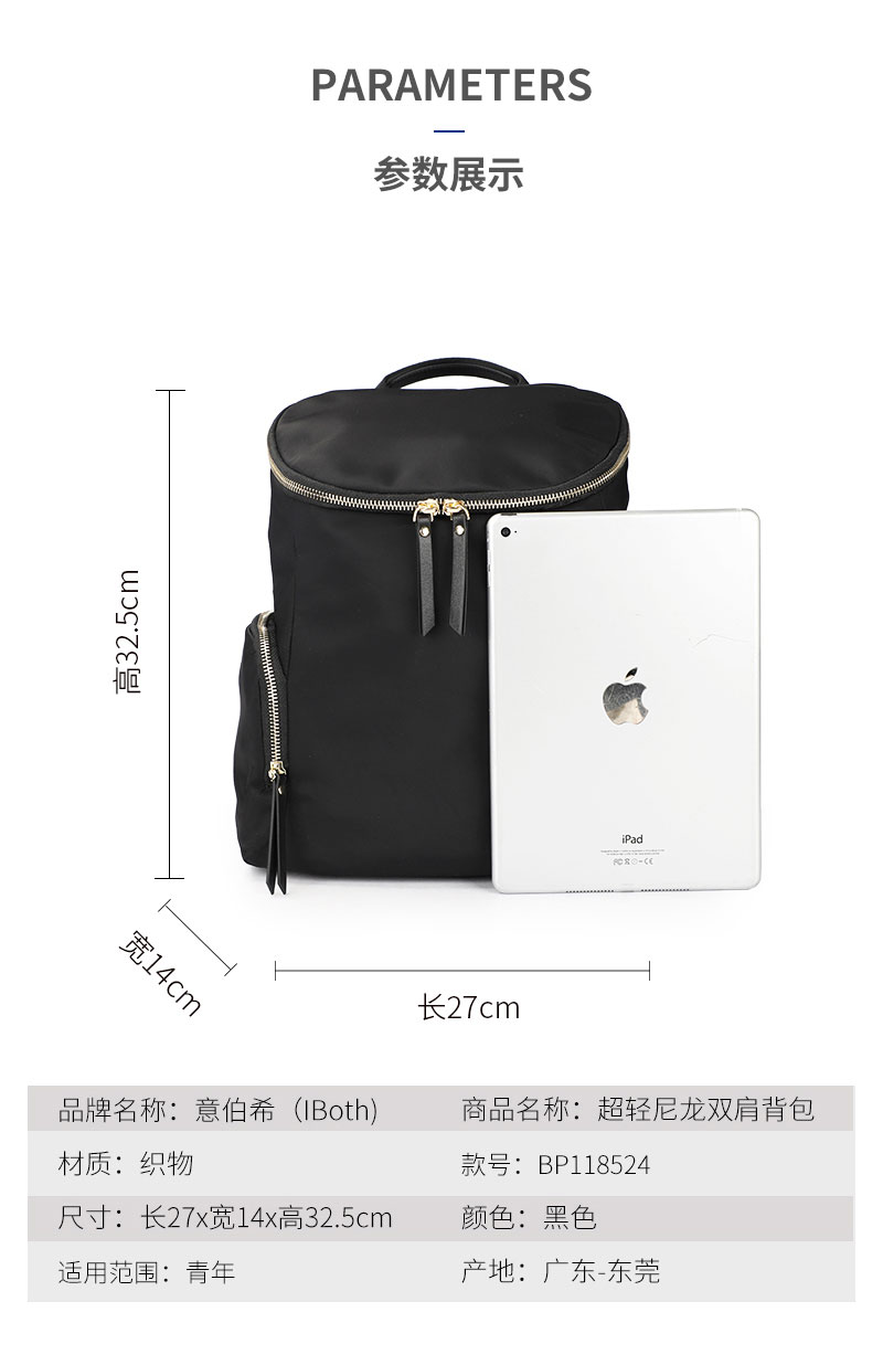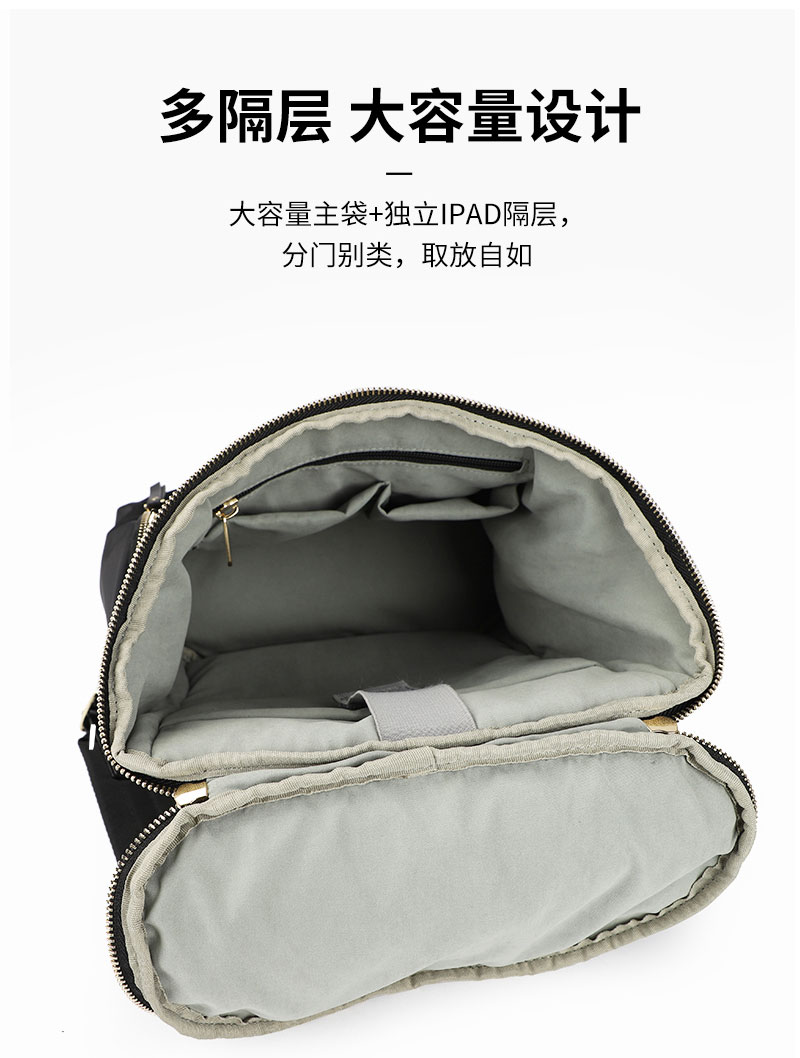超轻尼龙双肩背包定制采用高密度织物,防泼溅、防勾蹭。多隔层大容量设计,大容量主袋+独立IPAD隔层,分门别类,取放自如。舒适手挽,皮质把手,凸显高档。双拉链设计,开合顺畅,不卡顿。可根据身高和舒适度调节肩带,包包底部采用打枣加固,适合日常通勤、逛街等。女士包包定制,请认准豪门国际科技。豪门国际科技是一家以设计研发、生产销售、品牌打造为一体的智能双肩包生产厂家,产品时尚,外光精致,交货准时。定制热线:185-7539-1373