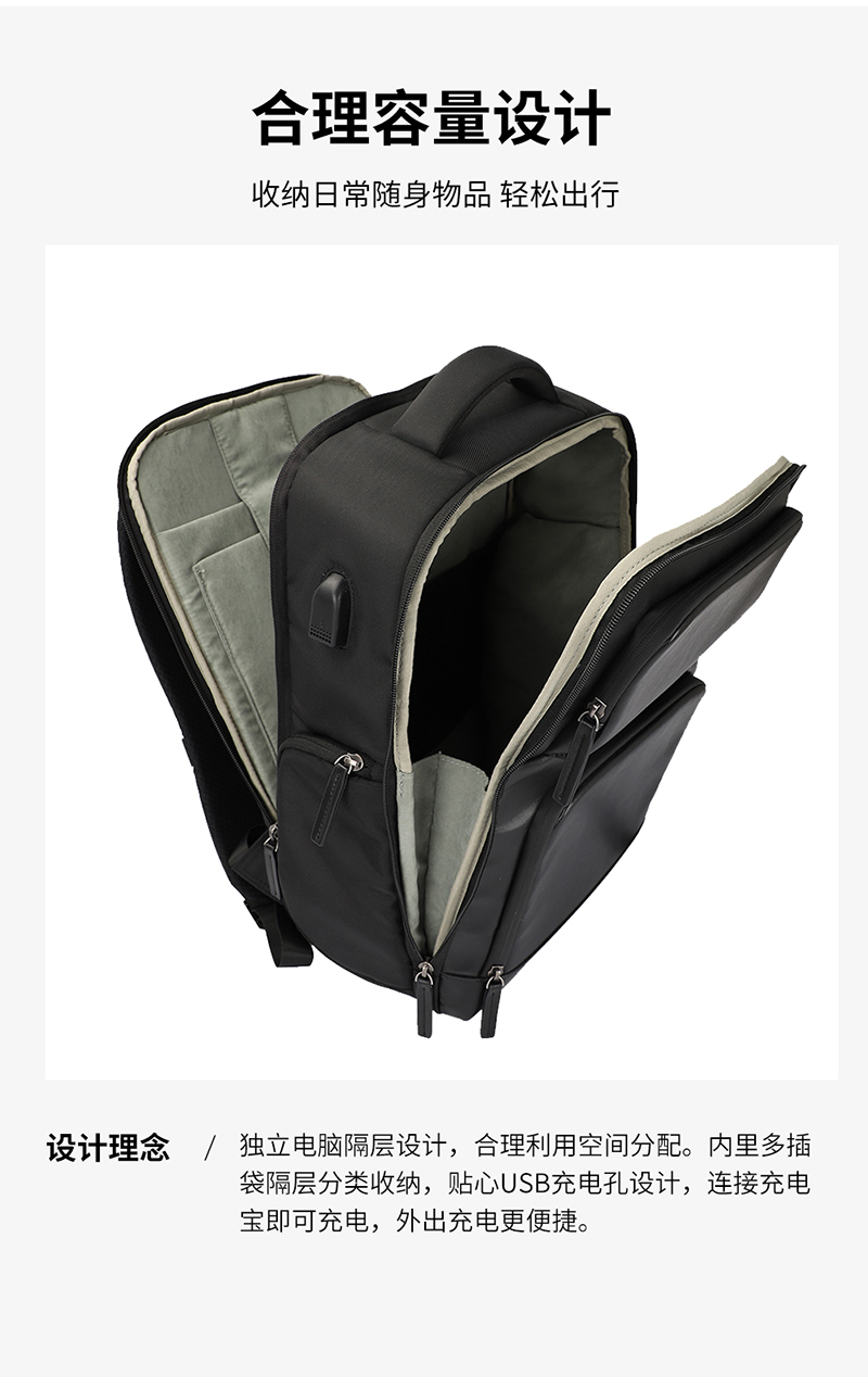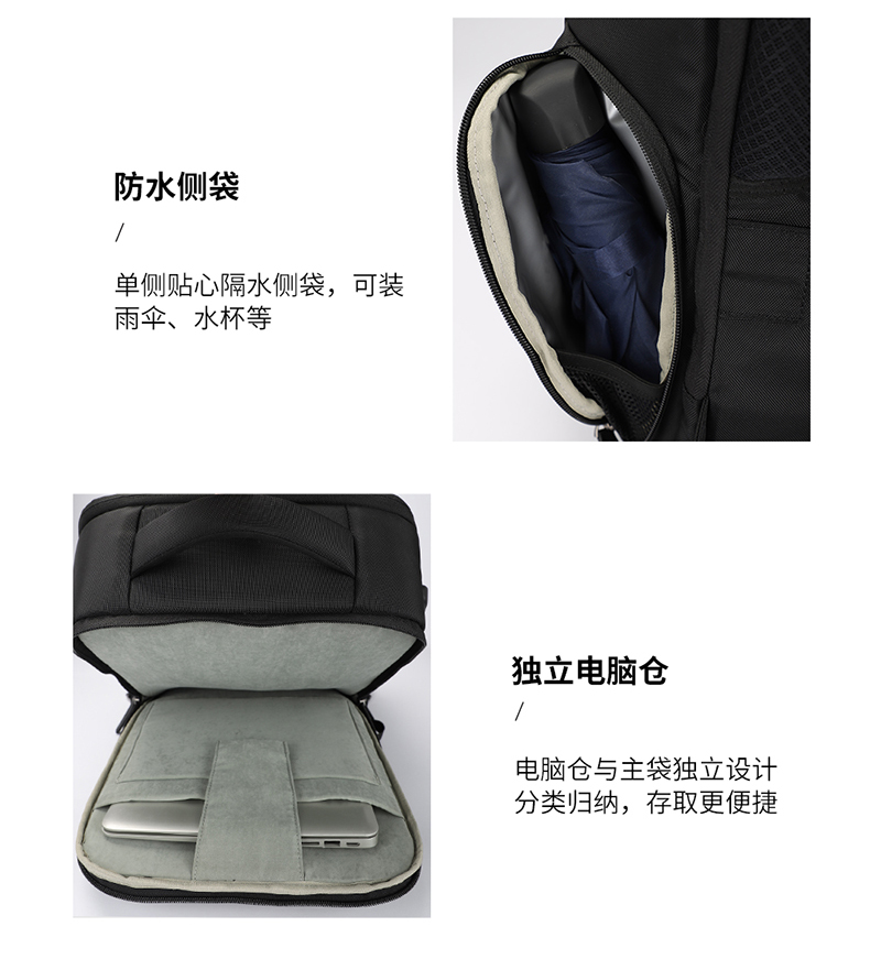 大容量主袋+电脑独立隔层,分门别类,取放自如;