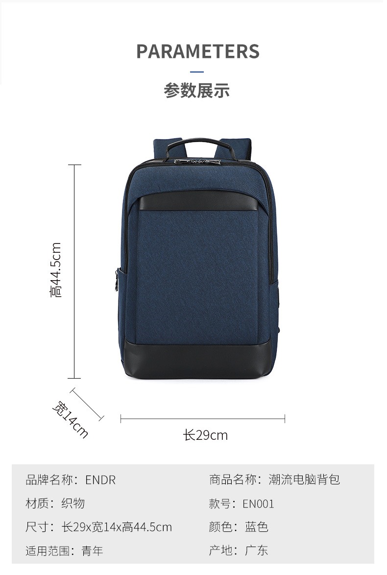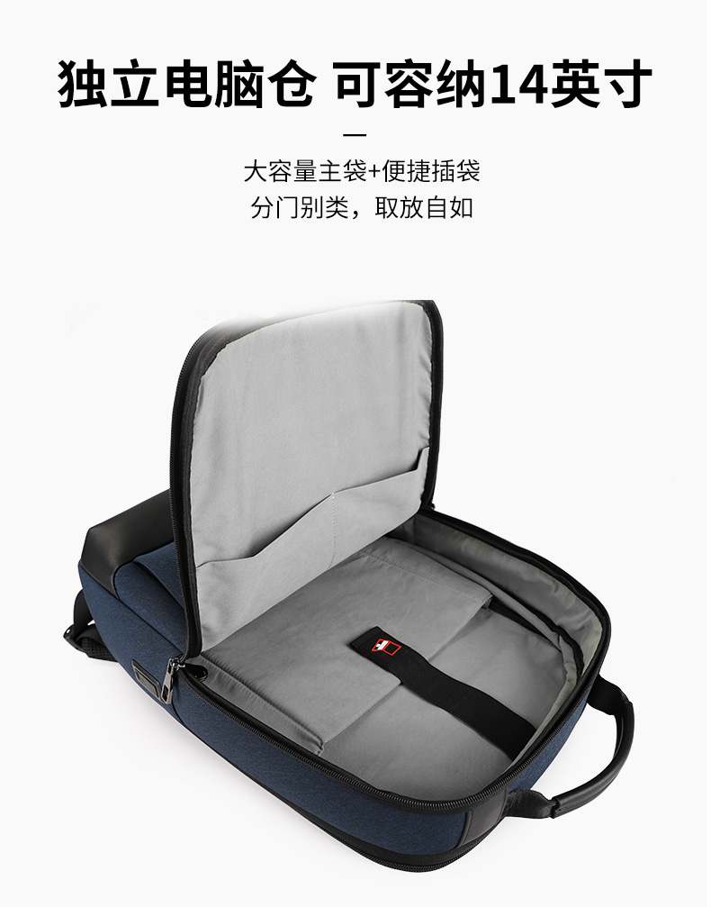 大容量主袋+便捷插袋,独立电脑仓,分门别类,取放自如;