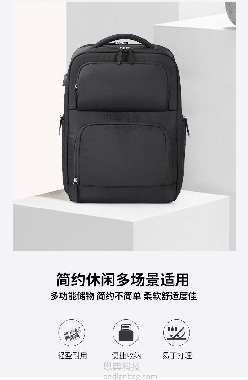 男士多功能商务双肩包定制大容量多隔层,适用商务休闲。立体网孔组织三明治面料,耐磨适用,不起球。840D小双股料,耐磨防撕裂,拉力强,面料结实,更耐用。USB充电孔设计,外出充电更便捷。独立电脑隔层设计,合理利用空间分配。商务双肩包定制请认准广东豪门国际科技,25年箱包行业生产定制经验,自建1.5万平米工业园,8000平米工作区,462名艺师,16条生产线,日产量可达13000Pcs。自有实验室拥有恒温恒湿、拉力、盐雾、破裂、拉链往复等检测设备,从原材料到成品每一个环节都经严格的检测,豪门国际皮具所使用的材料均达到国际环保REACH标准,客户中标率和返单率高达70%,5年畅销达到500万个。从开发到生产,专人为您把关每一个环节做好跟进服务。定制热线:18575391373