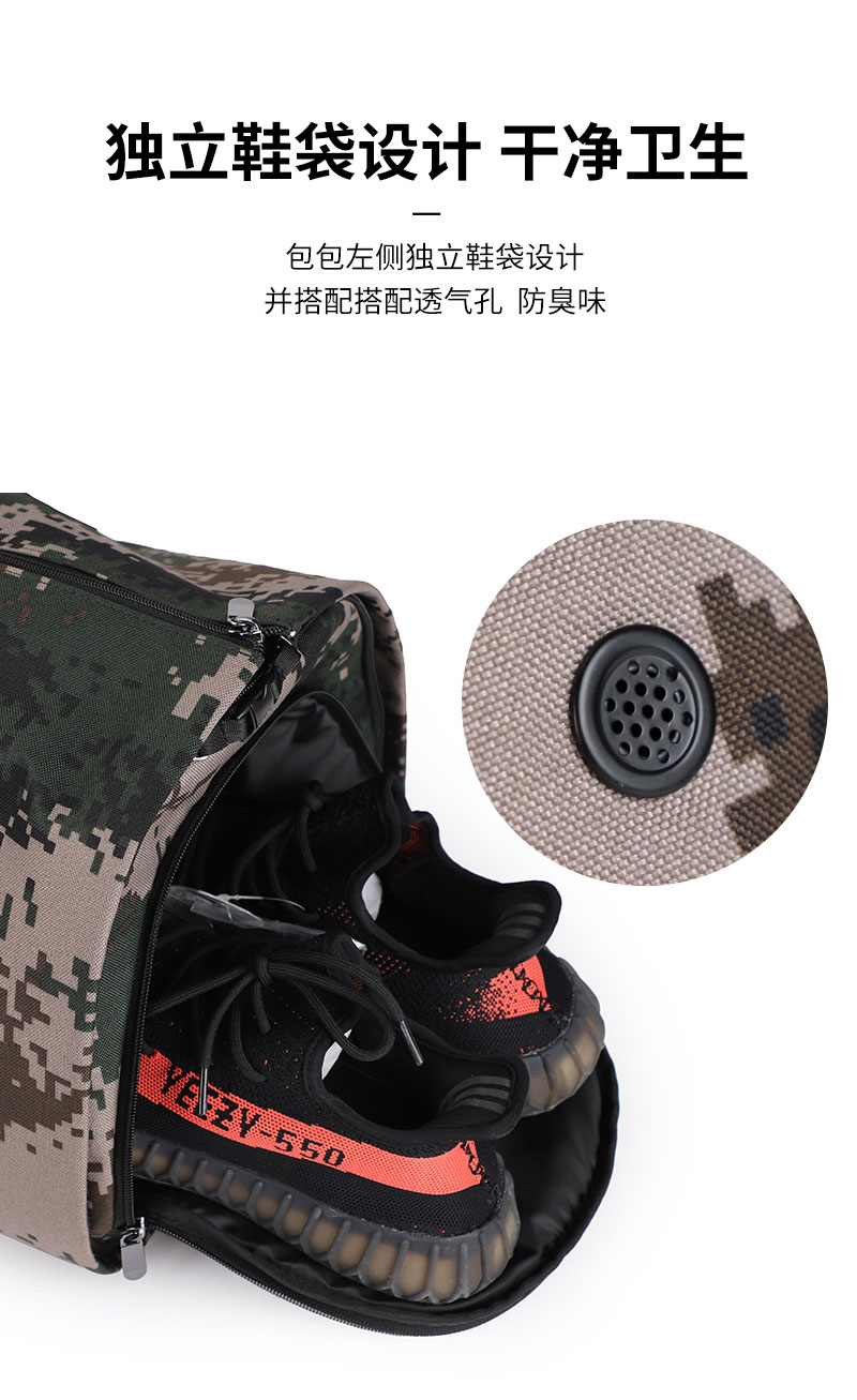 左侧独立鞋袋设计,干净卫生,搭配透气孔,防臭味;