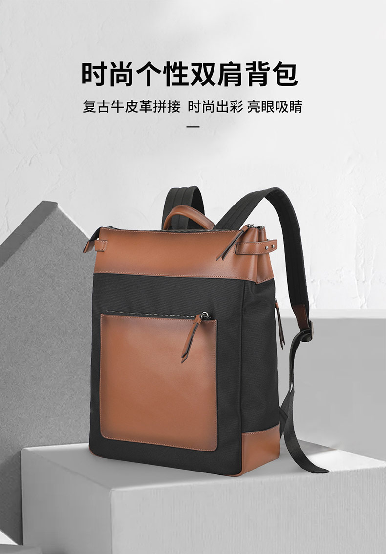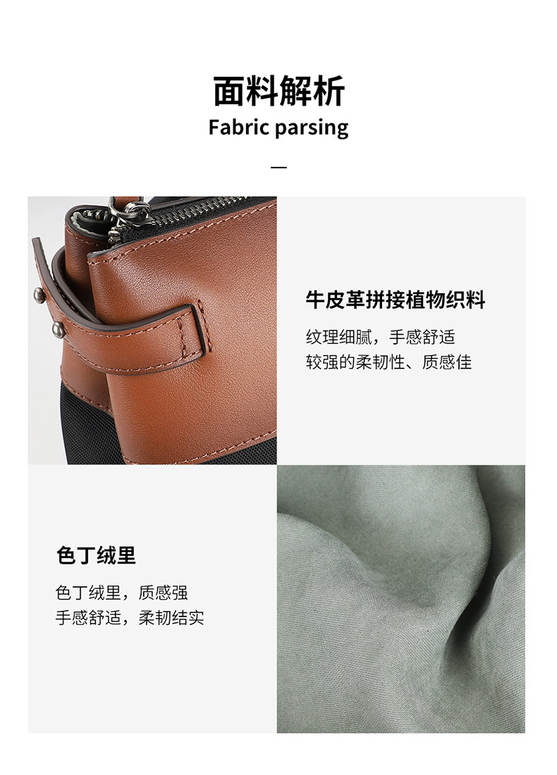 牛皮革拼接植物织料,纹理细腻,手感舒适,色丁绒里,质感强