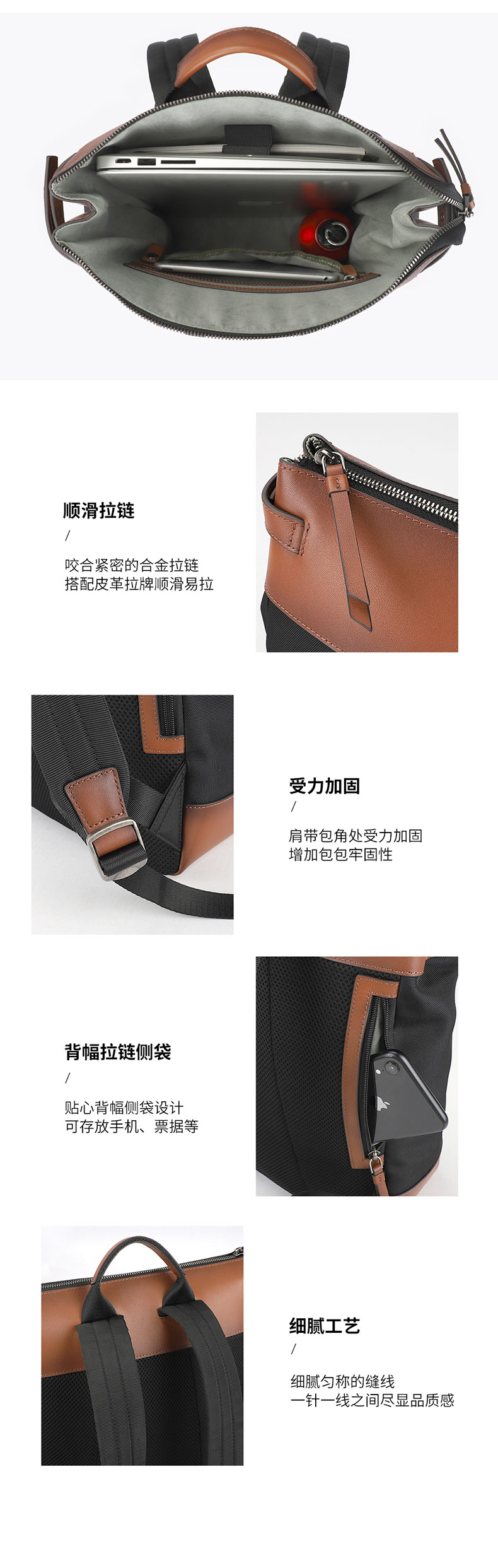大容量主袋设计,商务、休闲出行都适用;