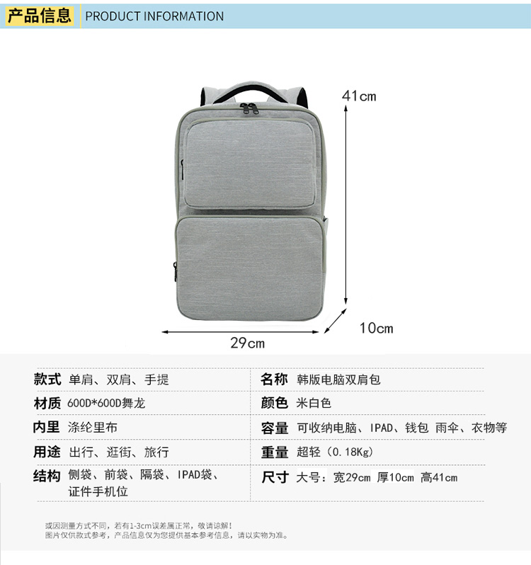 - 款式:双肩